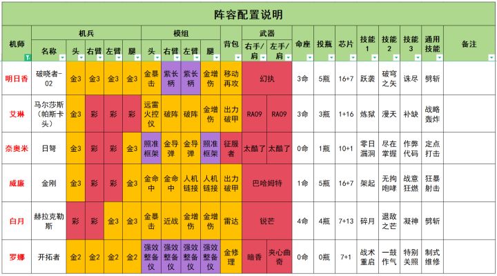 芙烈达和马库斯带飞行背包,负责攻击泰坦,明日香负责清小兵,艾琳漫天攻击泰坦,第6回合泰坦被地火烧死。芙烈达(3命/彩格莱杨/16+7/飞行背包)、马库斯(2命/彩暮色/1+16/飞行背包)、艾琳(2命/彩马尔萨斯/1+16/漫天)、梅丽莎(3命/腿左臂彩头右臂金2开拓者/1+16)、明日香(3命/彩2号机/7+16)
