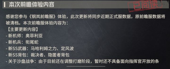 破刃之劍原创,转载或引用本文请注明来源及原作者《无止的逆流》版本更新前瞻向解读 转眼1.7无路可还版本即将结束,就在今天,前瞻服也是正式更新了部分1.8版本的新内容,笔者也是第一时间进行了相关体验,下面为大家带来本次更新的解读本文会涉及前瞻服更新的多方面的内容,除了邮件中提及的部分以外,还有其他的部分没有在公告中提及的内容一、 新机师奥菲利亚携机兵衔尾蛇堂堂登场 奥菲利亚系驾驶轻型机