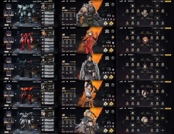 威廉(3命/彩金刚/16+7/架起、无拘咆哮、枪火不断、狂暴射击改)、明日香(3命/彩二号机/7+16)、罗娜(0命/金2金3开拓者/7+1/)、芙烈达(3命/彩格莱杨/16+7/彩霰弹枪、彩机枪)、玛丽(5命/彩马尔萨斯/7+16/鞭策、军事指导、全覆盖/彩重机枪)。