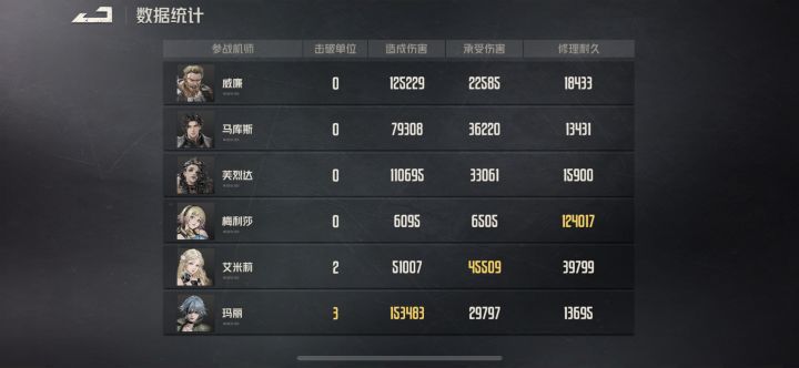 新版本出来后游戏难度提升了,再次逃离死境全突击突突突,先杀下方2号实验体,用协力攻击破必闪。上场阵容:芙烈达(2命彩暮色16+7移动破甲包)、威廉(2命彩金刚16+7出力破甲)、艾米莉(金1金2戴亚斯7+10出力协力)、玛丽(半彩xr1+16破甲包)、马库斯(1命彩格莱杨1+16飞行背包)、梅丽莎(3命金2金3开拓者1-16)。