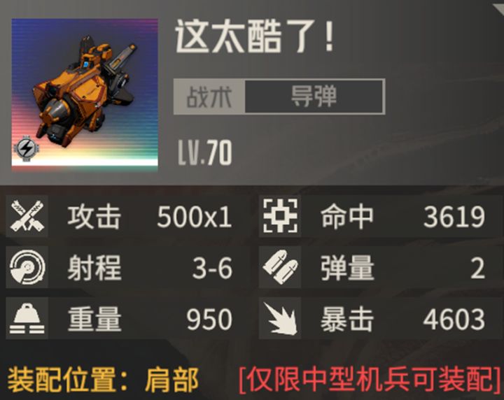破刃之劍原创,转载或引用本文请注明来源及原作者浅谈专属武器——这太酷了! 全能骇客: 奈奥米专属天赋强化效果,强化“超能骇客”为“全能骇客”奈奥米的天赋赋予其能够使用两发导弹同时对目标发动攻击的能力,理想情况下是通过双肩打击对敌人造成更多伤害,但是实战中,往往不尽人意,额外消耗ap及弹药却很难获得匹配的收益,这就导致“双肩打击”很少会被使用。专属技能则对“双肩打击”类技能进行了加强,以