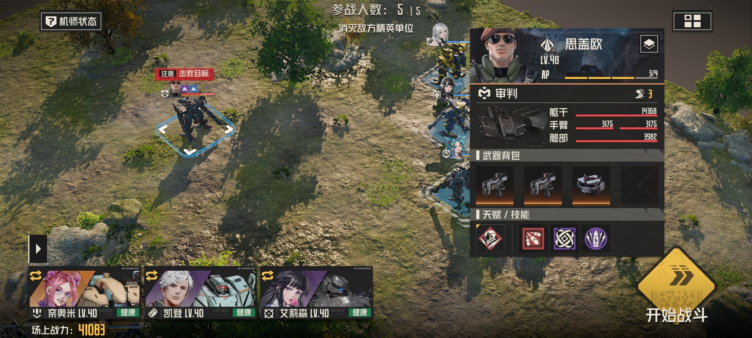 本文首发钢岚社区,作者破刃之劍,转载注明出处本文分为三部分:人员配置、思路分析、游戏进程一、人员配置:机师:机兵:武器:二、思路分析战场buff:攻击力提升200%,但主动攻击造成伤害时,战后使自身获得[宕机](敌方生效)本关难点:本关buff使得敌方伤害很高,但同时这个buff的负面效果也很严重本关解法:对方伤害虽然很高,但只要我方通过走位拉扯使我方不被攻击到,那么再高的伤害也
