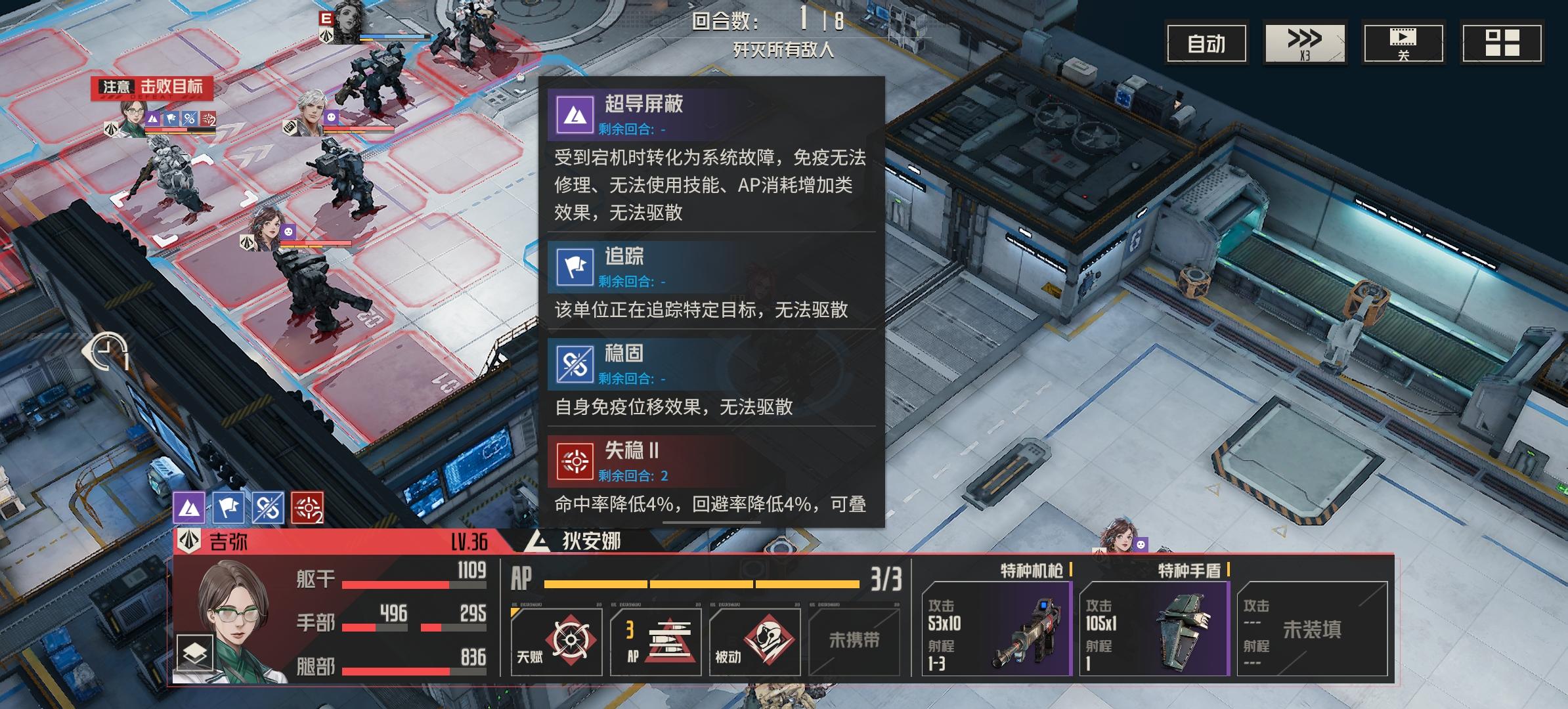 本文首发钢岚社区,作者破刃之劍,转载注明出处本文分为三部分:人员配置、思路分析、游戏进程一、人员配置:机师:本关如果伤害不够,建议带上守护者机兵:武器:二、思路分析战场buff:主动攻击时,战后使自身获得[机能充沛]:造成伤害提升30%,可叠加5层,无法驱散(敌方生效)本关难点:本关敌方buff较为强力,而且我方会同时面对多个敌人,敌方伤害随buff叠加越来越高,我方输出人员很难
