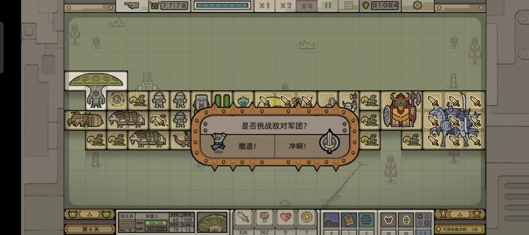 这次选用的是火腿大师这个英雄,主点1技能【熏烤专家】(从技能面板来看的话【熏烤专家】的强度还是比较可以的,可以“人造”一个盾墙,但是可能是因为我更习惯了盾墙和铁壁的稳定存在吧,感觉【熏烤专家】的强度比较一般); 出门推荐,带烈焰猪,蛇蔓兽叠面板(没有解锁蛇蔓兽的话也可以出精英猎手给破甲),领主的话,还是带的妮可可以给野兽和植物(植生兽)额外的经验值加成,对于蛇蔓兽和烈焰猪都是不错的,而且第六章的两