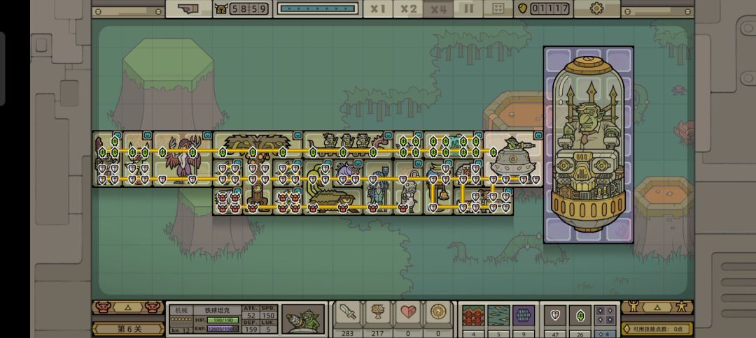 这次选用的是铁轮先生这个英雄,主点盾墙作为主坦; 出门推荐,带烈焰猪,蛇蔓兽叠面板(没有解锁蛇蔓兽的话也可以出精英猎手给破甲),领主的话,群友圣光给的建议妮可可以给野兽和植物(植生兽)额外的经验值加成,对于蛇蔓兽和烈焰猪都是不错的,而且第六章的两个1星强势输出(沉沦猫和蝎尾猫)都是野兽,还有魔藤仔和圣械守卫的【深渊魔藤】可以“改造”周边单位,让他们也可以吃到妮可的BUFF;