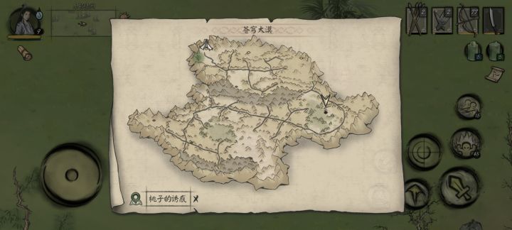 到达图二后我们会看见第二个大姐大NPC-秋月,与之对话,得知暮白就在上面一点的位置,向上走和暮白对话。 暮白向我们推荐了“如来佛祖玉皇大帝观音菩萨指定取西经特派使者花果山水帘洞齐天大圣”-孙悟空,没错,我们的猴哥现在又来帮我们了,位置如图。 到达后发现大圣正在睡觉,需要我们用5个桃子诱惑大圣醒来,桃子可以在图一的桃源获得,也可以在图二的东部绿洲获得,位置如图。(*此时可以去沙塔镇找守门人NPC