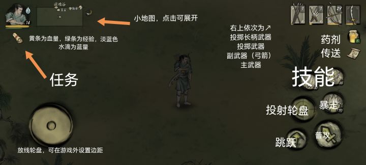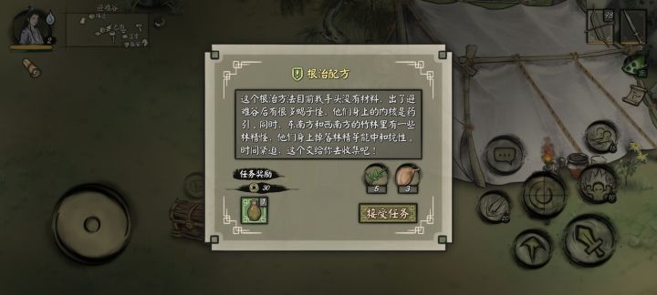 本篇以剑客带入视角,写攻略很累,细节或有疏漏朋友们见谅了。 游戏在更新,部分数值以后可能对不上,总流程大差不差,这个诸位自己区分喽。 我们在出生地开始,进入游戏就会看见一个带有淡黄色叹号的NPC-芷雪,是我们的主线NPC,上前对话接取第一个任务。(新来的勇士) 我们打开左上的地图,在出生地(避难谷)周围的三角形绿色地形找(生气的)林精击杀足够数量,(图鉴请看我的第一章小怪汇总,