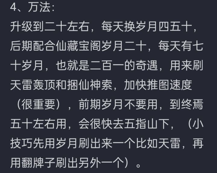前言:此文为有一定游戏知识储备的玩家所写,保持一贯作风,文中攻略内容也是全网首发,独此一家。普通玩家如果想过一路到达五行山,会走卡盾或者站撸的路子(其他方法暂本文不做介绍),卡盾的文章我没有发,因为所有人都在发卡盾的文章,站撸的文章我在攻略一里写了。在玩家掌握一定游戏基础时,通关一路速度不一样,个别玩家会明显比别人快很多,这其中的核心攻略从没人写,所以我就献上速度快的核心攻略,方便大家快速达到