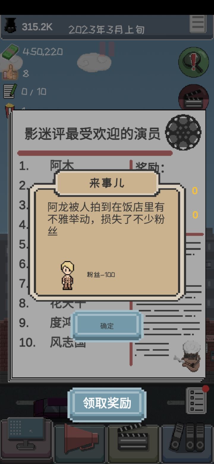 这游戏就是广告游戏,不看广告,必定破产,开局送的两个演员,要什么用都没有,到后期一个月几百万工资,一些好剧本,投资方必须要你用这两个演员,用了拍出来就是亏,解约又解不了