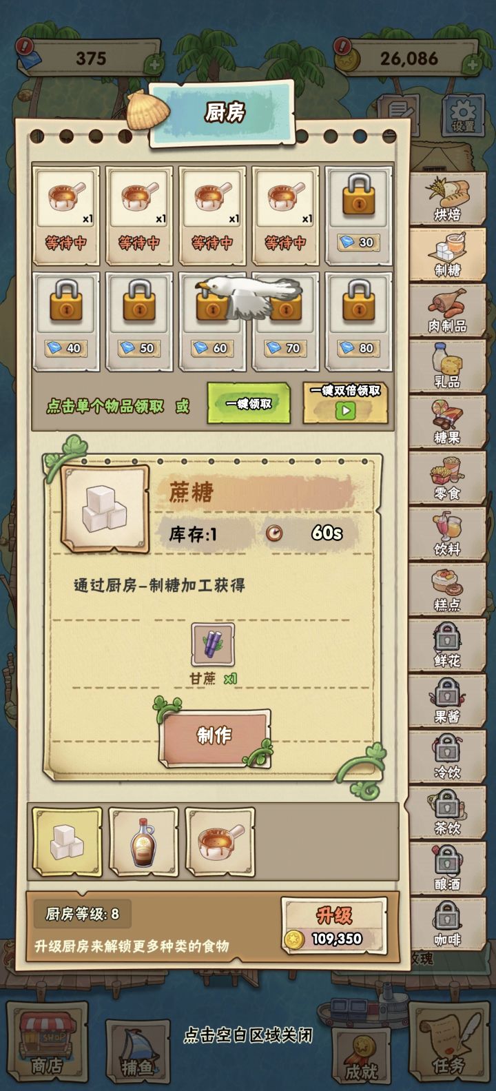 作物永远是供不应求,而且就几块田产量也少,金币更少
