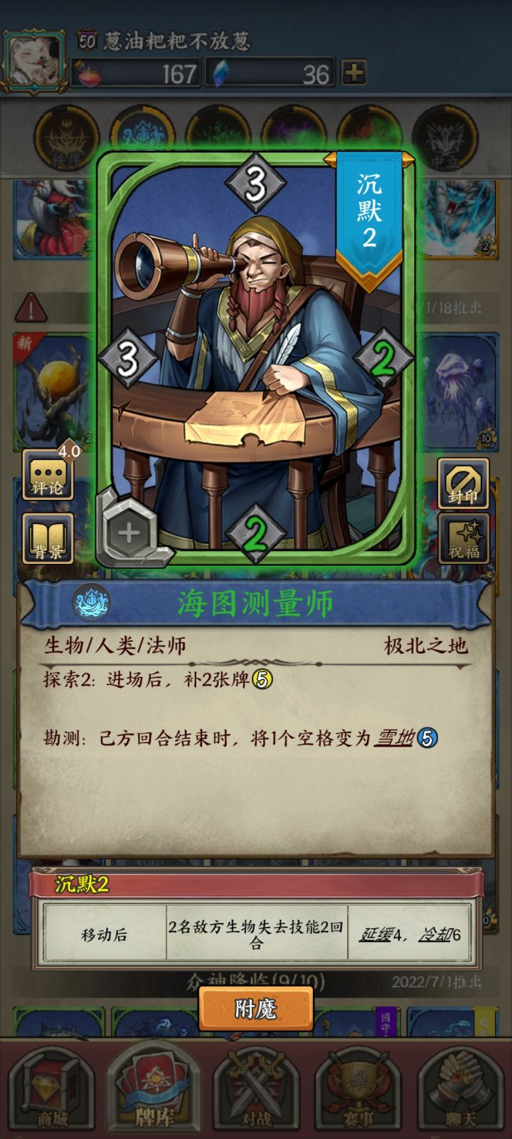 英雄爱三国和卡牌对决开荒玩家认为这游戏现阶段是废的附魔系统就是败笔,个别卡随到个别附魔直接起飞,到后期你怎么加新卡(新环境)后期的卡更加复杂福利也是差的很 月卡战令让人氪了之后瞬间后悔,老玩家告诉你们 这游戏段位没什么用,后面慢慢都会上挑战赛,早上晚上都一样,反正没奖励日常玩两把,攒攒卡,期待试炼之地和轮抽吧
