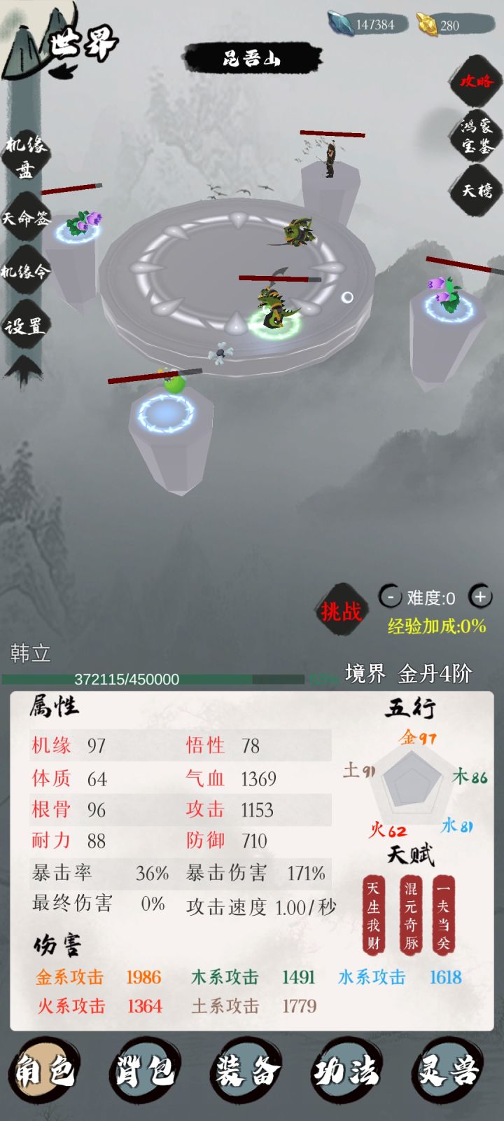 开局不知道最佳天赋至少选择其中俩种金刚不坏 (防御),一夫当关哦(攻击),万夫莫开(血量。后面筑基期炼丹应该服用紫色丹药,千万不要混吃,特别是筑基丹导致攻击没满。最让我无奈就是看了攻略玄,但是死活刷不出。打试炼感觉还是暴击最舒服,让宠物抗,伤害由自己打。