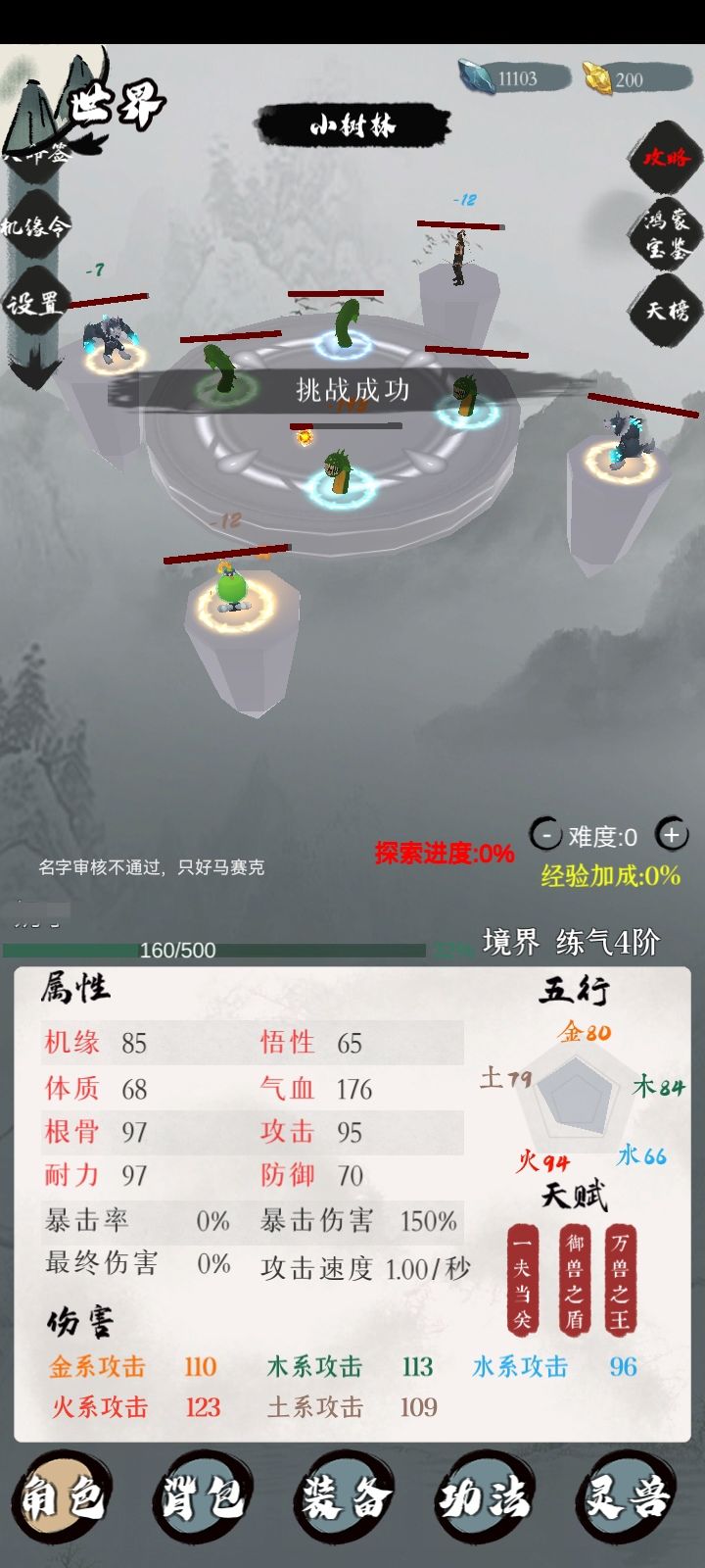 所以我们可以得出,火系和金系是受加成比较大的属性,这两个属性越高,受到的加成就越明显,而木系和土系受到的加成就越小。这里指的加成就是装备上带的五行百分比加成