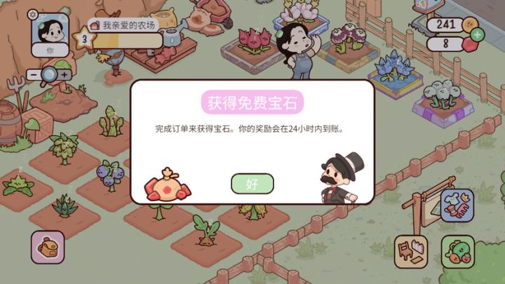 画风很好 非常可爱 但是金币和宝石太难得了 宝石广告一天只能刷一次 每天只能得到少得可怜的5块宝石和250的金币 实在受不了 买了个迎新礼包 100宝石全是用来开新地块 这么多的植物收益也是少得可怜 只有两百多金币 然后就是漫长的几个小时的等待 现在就感觉这游戏没啥可玩的了 有空就只能看广告刷刷衣服家具或者植物……