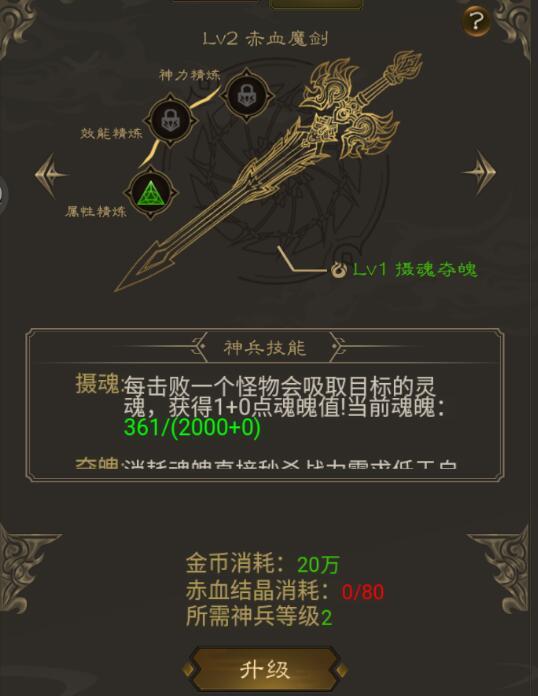 神兵系统建议取消魂魄上限,已经限制只能秒杀战力一半的BOSS,还把魂魄收集搞这么麻烦,真的很多余,让玩家挂机一晚上白天起来可以秒秒小boss减少跑路时间不好吗,玩的太累就更容易弃坑,最好能降低一下魂魄消耗,我觉得打小boss做成偏收菜方向比较好,花点时间打大BOSS就行