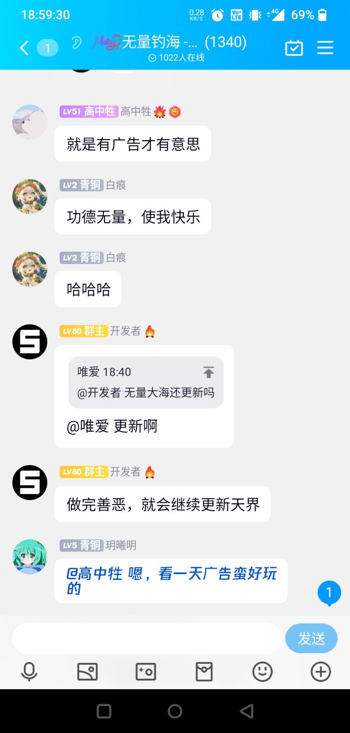 活久见,先是下个破解版的游戏,刷个几十万功德(其他道具不详),然后发到群里秀,“我只是单纯的不想看广告”,完事作者修改破解版,不能免广告后,又在群里说了,“哎呀,其实看一天广告挺好玩的”。变色龙变得都没你快啊,这个号作者不封,怎么对得起我们每天看几十个广告和氪金的玩家?