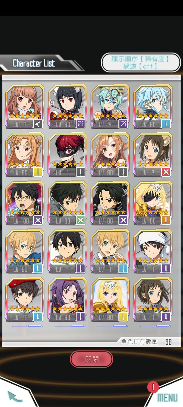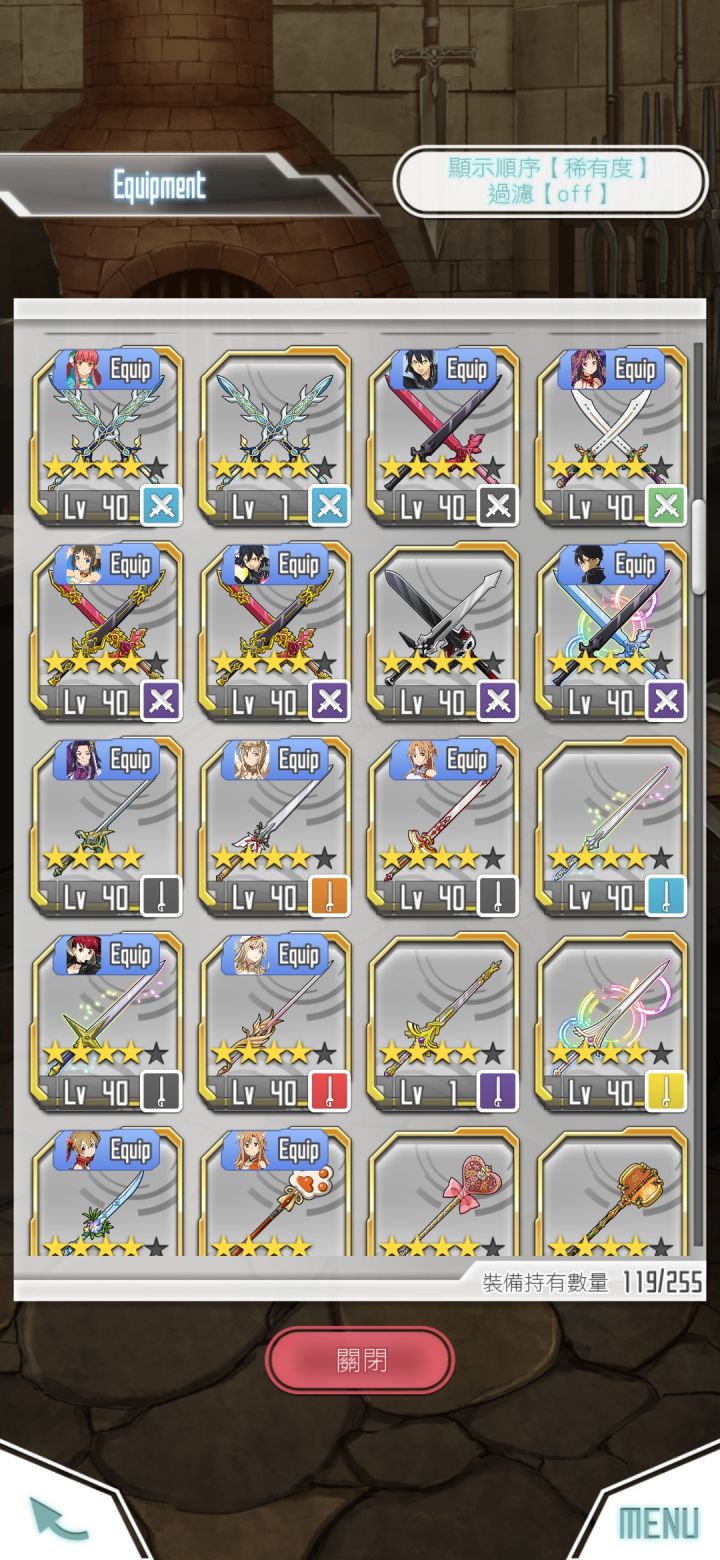 我武器现在只有这样了,本来是想整下四周年桐人五星R5结果优吉欧的武器出的最多目前没得钻石抽了