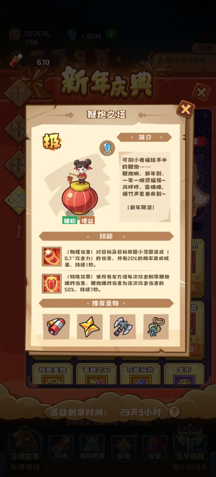 圣物:5史莱姆1双截棍 大招:16秒7次 输出伤害:592M