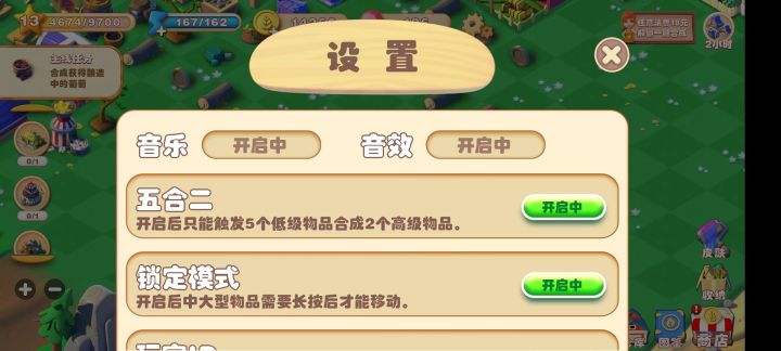 【攻略】五合二与锁定模式本次攻略将为大家介绍高效合成和移动时可能会需要用到的方便操作,五合二与锁定模式。 五合二是合成游戏中的最高效的合成方式,如果没开启五合成2直接合成可能会出现21个低级物品合成7个高级物品,但是20个低级物品却能五合二出8个高级物品。或者10个或者12个低级物品都能合成出4个高级物品。为了避免这种尴尬的时刻,开启设置后只能触发5个低级物品合成2个高级物品。这样每次合成都是