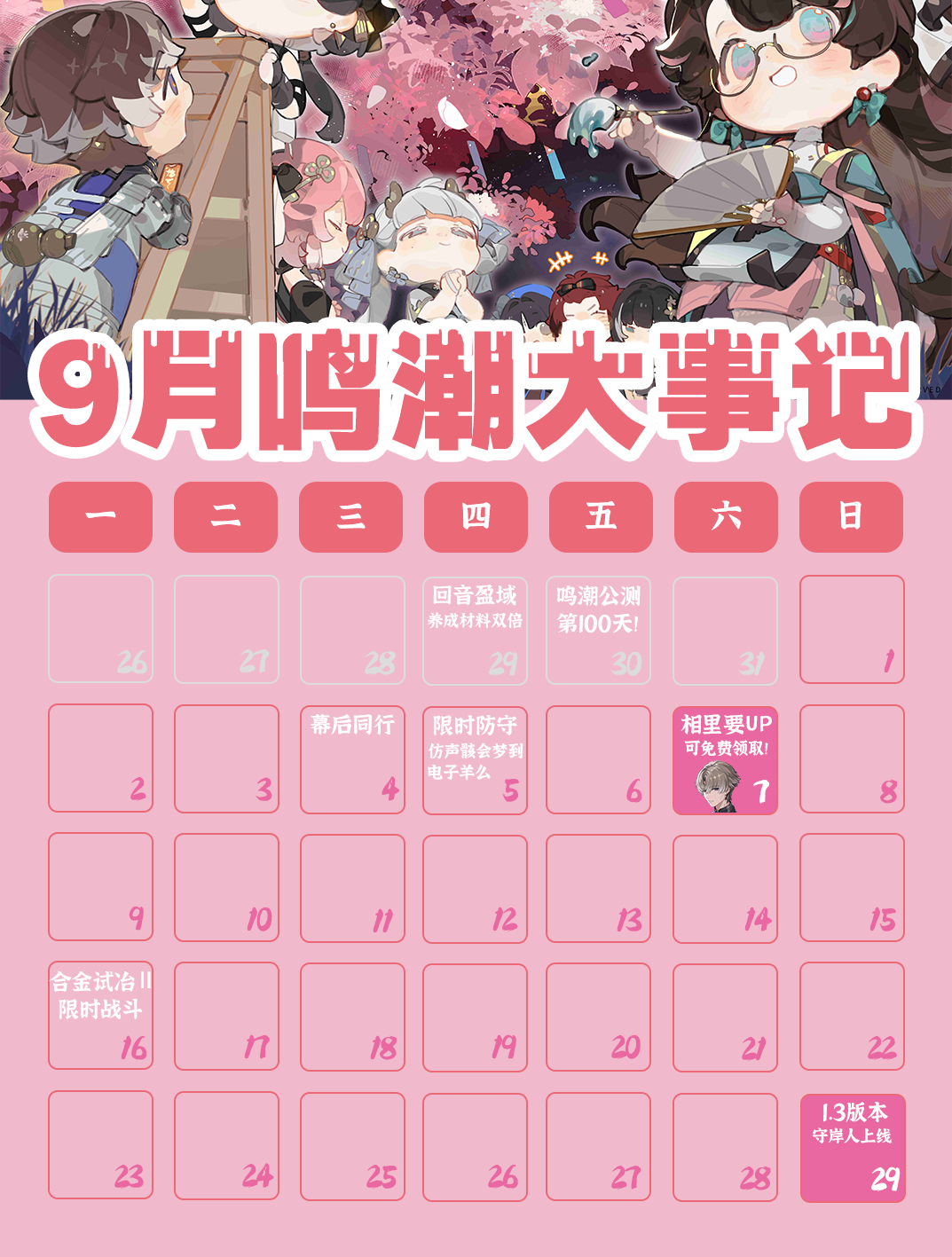 【鸣潮】9月大事记一览,记得领取里哥