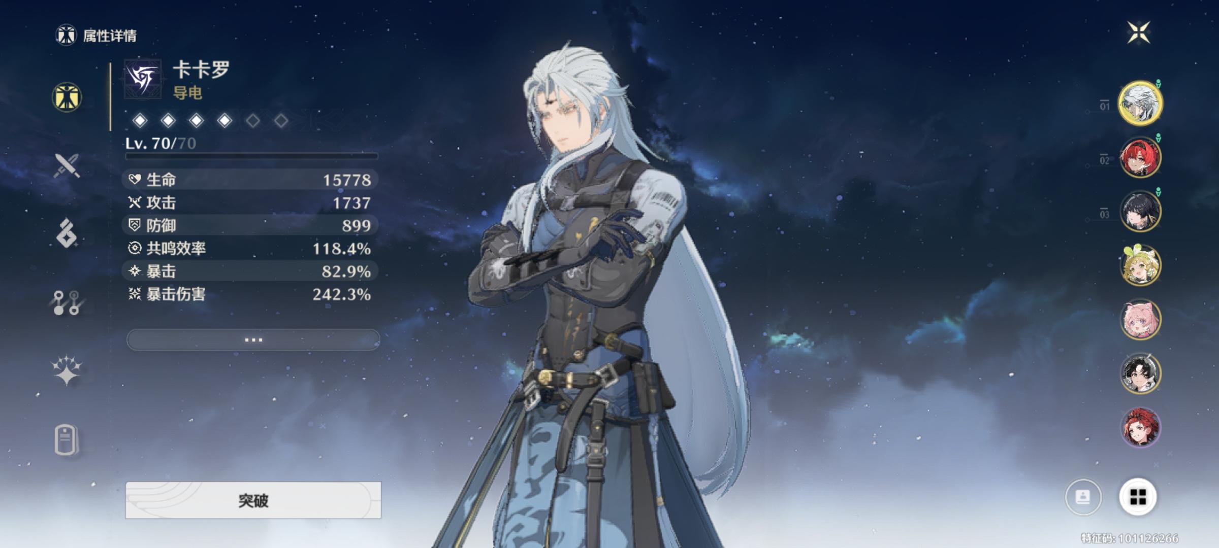 目前队伍只有一队资源不够买体力舍不得石头,作为开局雪豹的没玩过内测的玩家果断养女主,因为单纯的发现女主伤害挺高的,嗯,搜索了一下视频,他们又说20级过后的案组更厉害,就一直养着主角了,然后目前第二个是安可r,因为当时主角练度已经起来了,就没怎么玩目前配对是暗主散华维里奈(暗主声骸43311,4暴击伤害3湮灭伤害加成1经量暴击爆伤)别问问就是送的武器是攻击攻击,目前玩着还行,散华就冷凝爆伤暴击当复