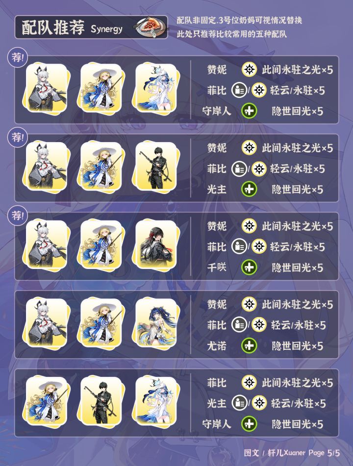 鸣潮菲比还在复刻中,如果想玩赞菲队快过来学习如何培养她了!本篇攻略轩儿Xuaner给大家带来鸣潮菲比V2.8版本的最新全方位养成思路~-----------------------------------------① 菲比定位衍射副C/主C。菲比有两种输出模式,蓝菲比主要是搭配赞妮的光噪效应体系,为赞妮提供光噪层数。黄菲比主要是菲比自己输出。当前版本0链副C菲比逆境深塔T0.5,冥歌海墟T1