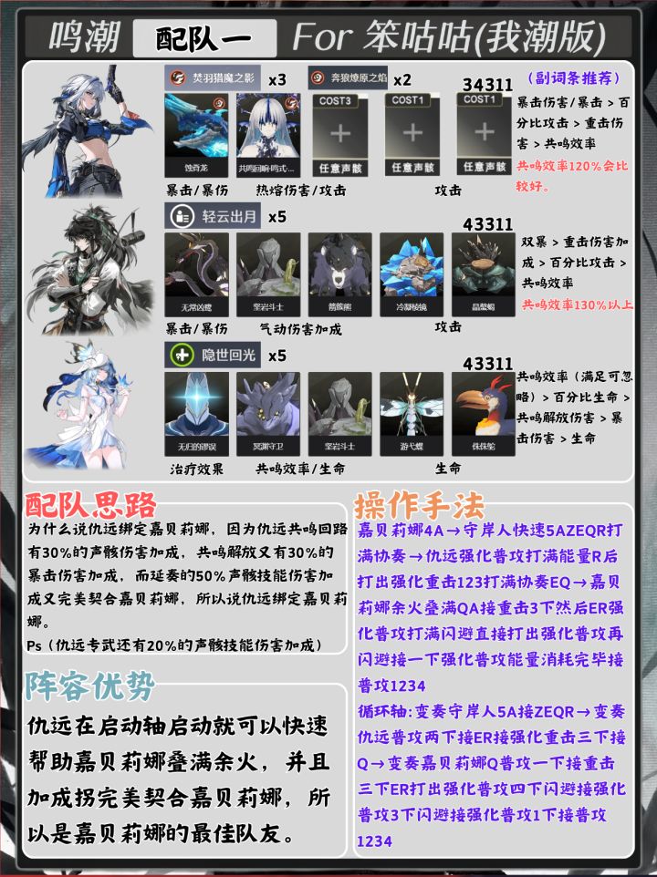 #鸣潮 #鸣潮创作激励 #鸣潮攻略 #鸣潮仇远 #鸣潮配队 本期内容带来的是2.7版本“仇远”的配队攻略~ 内含声骸/配队等内容~PS:🌟 Cost3的提高热熔伤害和声骸技能伤害效果非常适配嘉贝莉娜,因为嘉贝莉娜的声骸技能伤害占比差不多有6成。观看的小伙伴觉得不错的话一点要给个大大的赞噢!(内容制作数据相关参考鸣潮wiki,有错误引导,欢迎大家指教批评,笨某一定虚心接受!!)-----