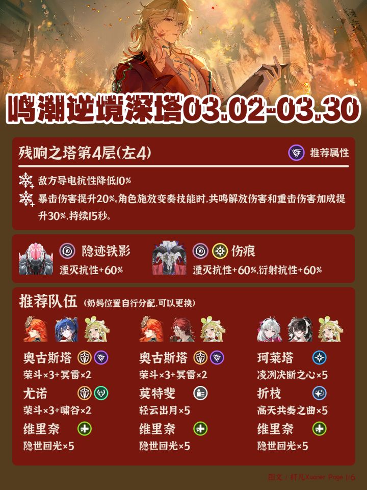 #鸣潮创作激励 #鸣潮 #鸣潮攻略 #鸣潮活动 #银翼杀手荒野 #银翼杀手荒野 以下全是试用角色没用过任何自己角色全奖励拿完 第一关尤咲露233280 第二关陆莫尤284331 第三关嘉奥忌256271 第四关卡夏千261615 第五关弗坎仇270361 第六关爱琳莫289391 希望能对大家有所帮助