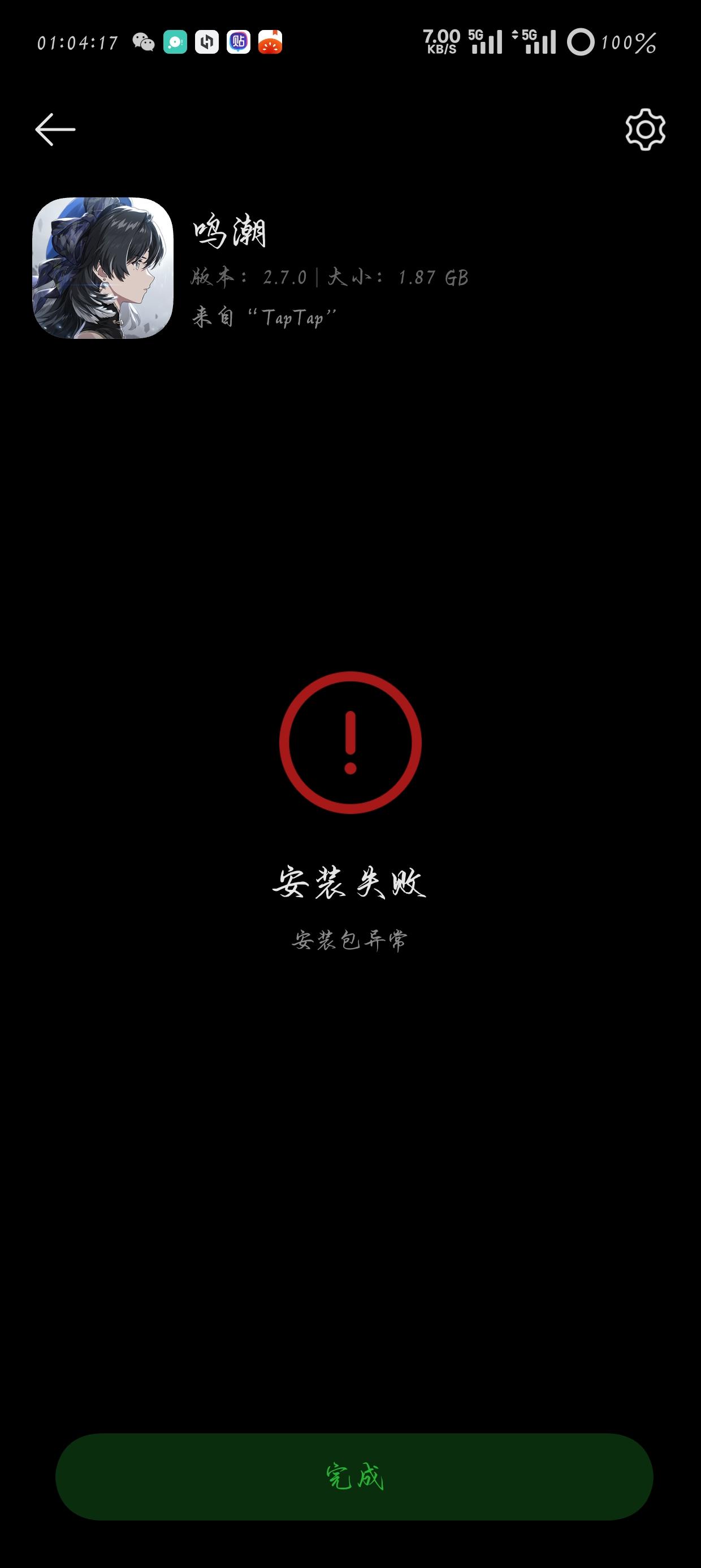 下下载了很多次,每一次都显示安装完成,但是又说是安装异常,不是换了很多个地方都没有办法加载进去,游戏也开不了,一直放在这个界面