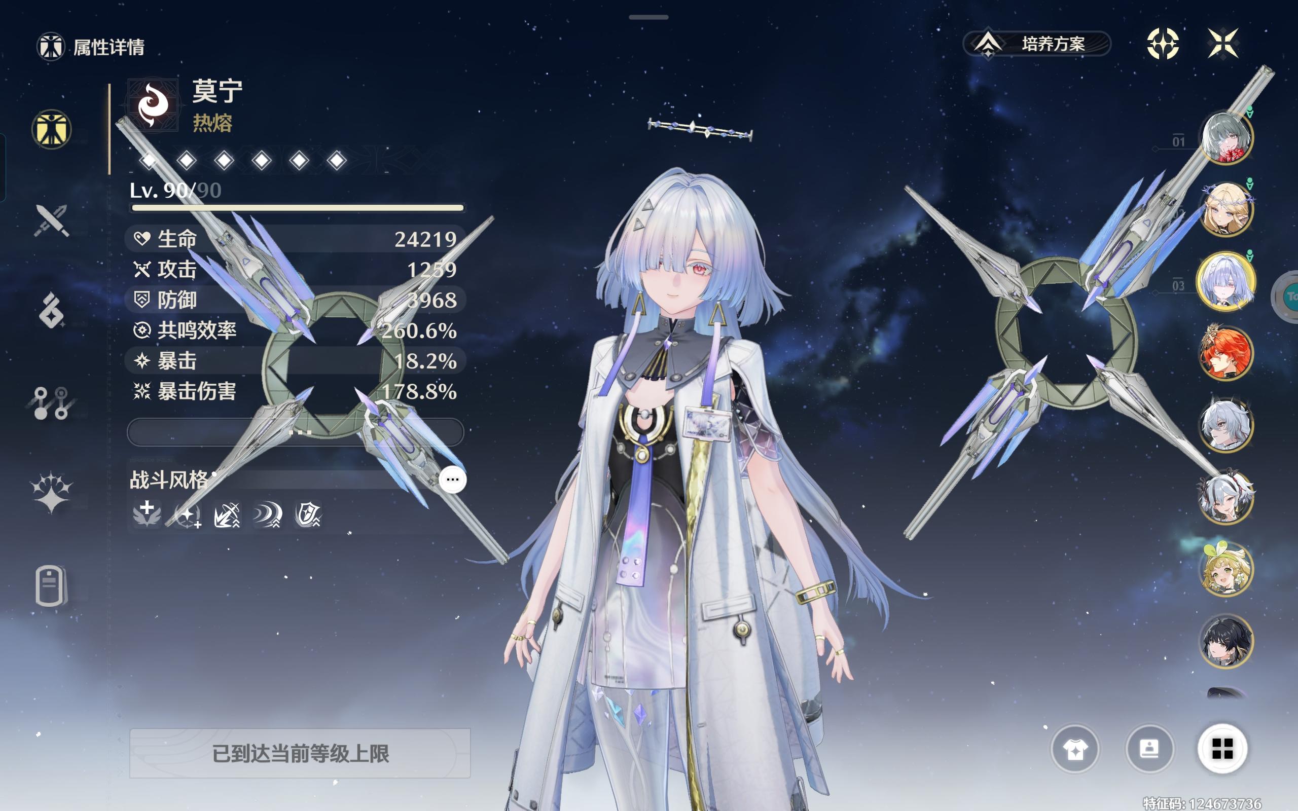 我的莫宁是1+1的,这个面板还有什么需要提升的吗?我不太懂,只知道要多加防御,共鸣效率要260%。这个面板离毕业有多远呢?