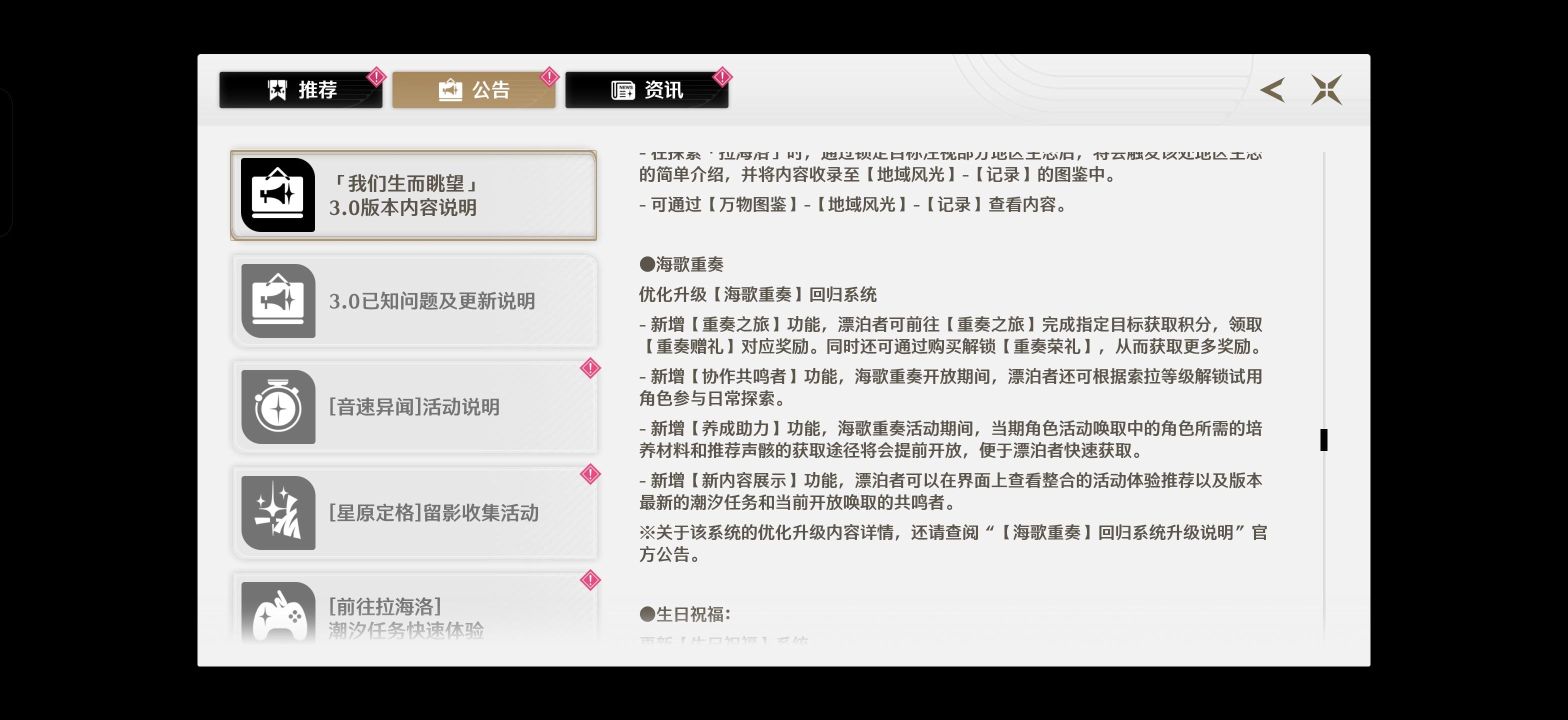 以前老玩家了,玩到联觉20多级退坑,上个月回坑发现没有回归奖励🥹🥹说是等3.0才上线就一直玩到3.0,但是回归奖励呢?在哪里?海歌重奏根本没开