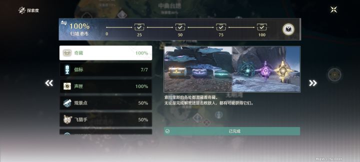 这个【奇藏100%】是不是代表自己已经把那些无法被探测仪扫描过的宝箱都拿到了(不清楚隐藏是否也算在内)没怎么看博主扫图,几乎纯靠自己摸爬滚打有些不清楚