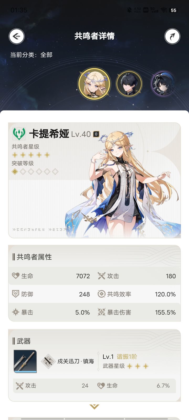 是个中等耐肝王和微氪目前30抽出了一只卡提,专武20抽还没出大小月卡已买新手池抽了20发,接下来怎么规划捏是卡提控,就是因为卡提才入坑的看攻略都是2,3命卡提质变那我是接下来抽个守岸人和对应专武呢,还是努努力抽卡提二三命呢,而且好像夏空抽不了了,悲大佬们可以大胆给点建议,都会认真看的#鸣潮