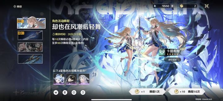 如题。另外想抽一只夏空过几天再抽个卡提希娅,我该怎么配队呢?