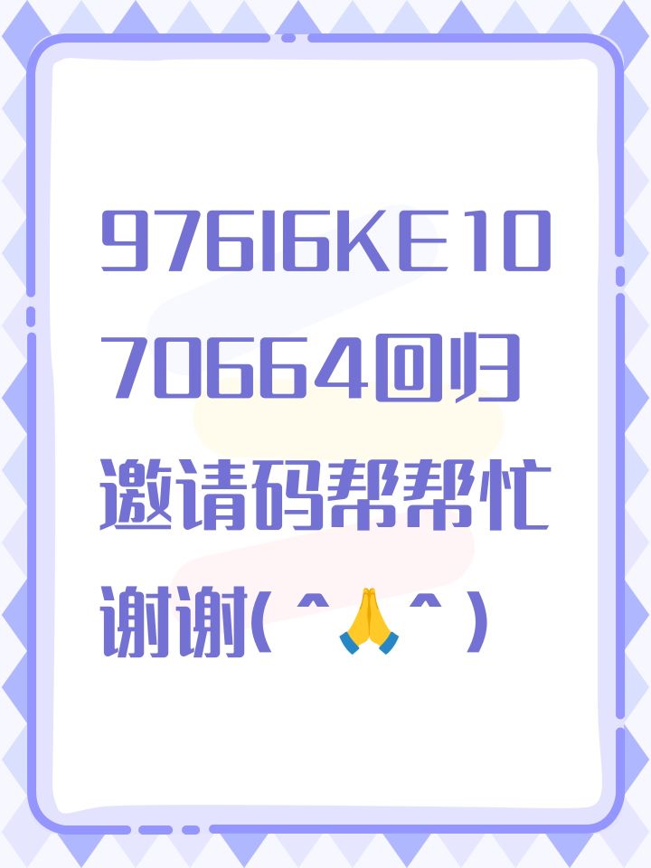 976I6KE1070664回归邀请码帮帮忙谢谢(^🙏^)