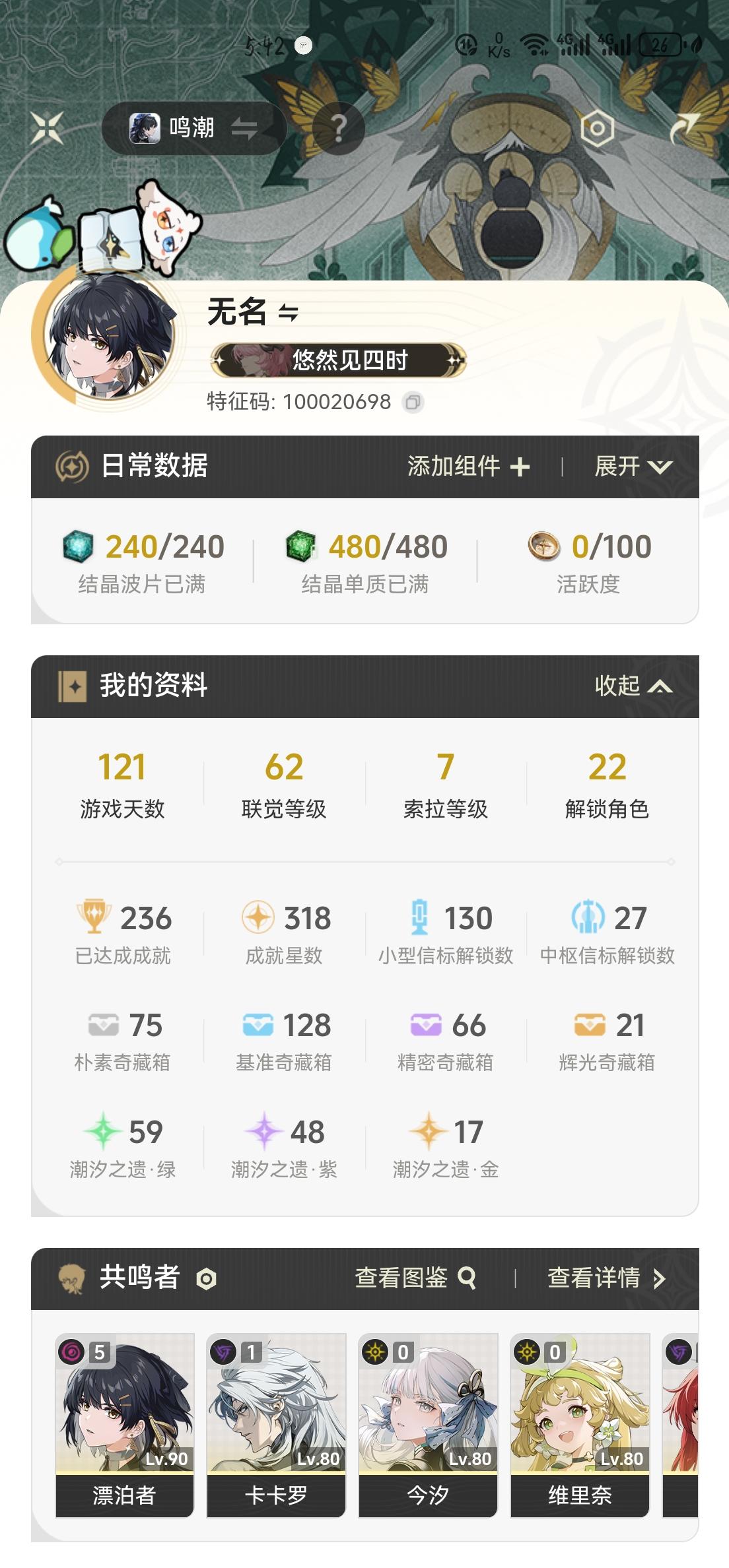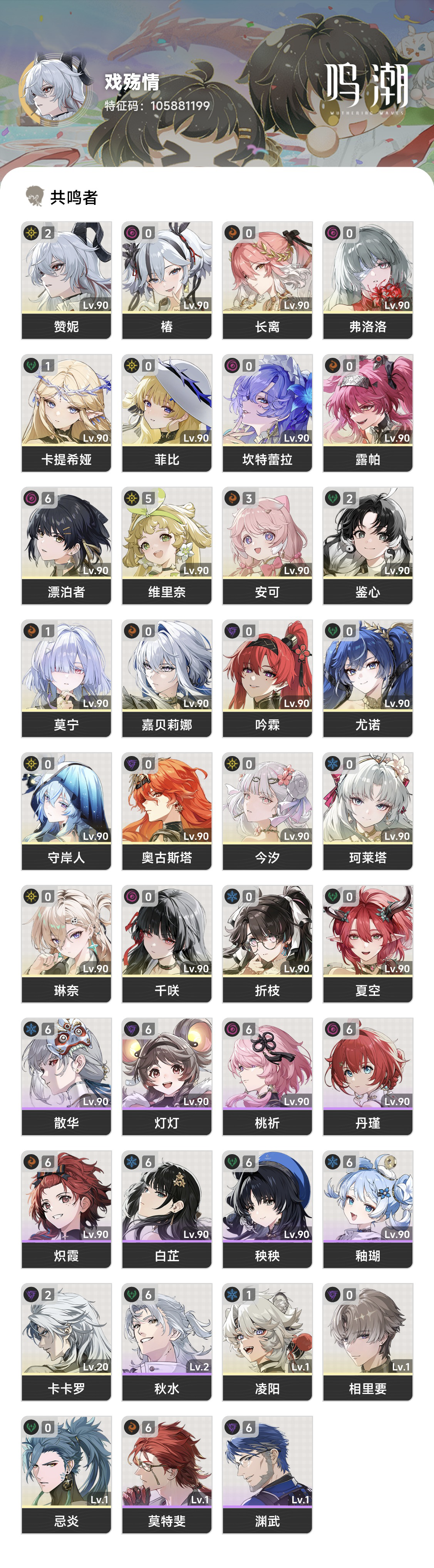 断断续续的玩看到想抽的就回来抽,抽完直接退角色都没养,声骸也没刷,现在没什么好玩的游戏就回来了,刷了几天声骸一个有用的都没有玩的挺难受的,因为就歪过一次还是提前出的所以也不想开新号(主要想知道要怎么刷声骸难受啊)
