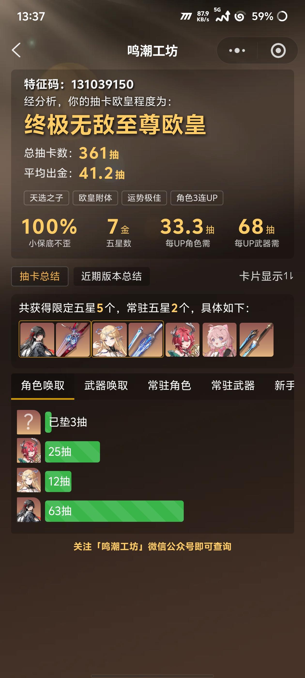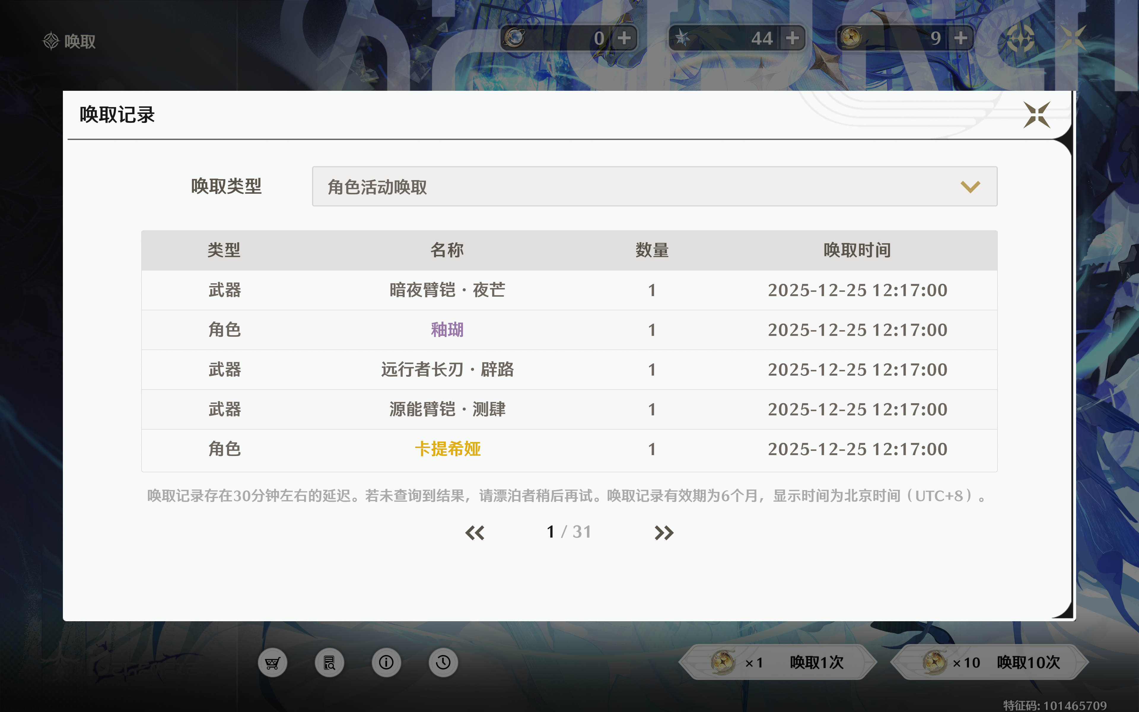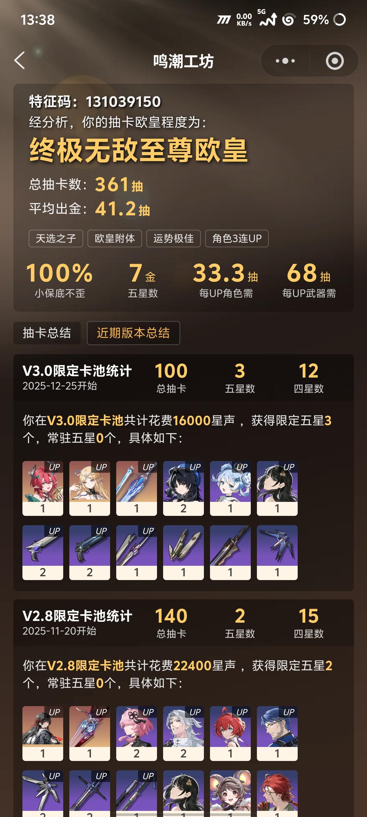 2.8入坑萌新。3.0版本100抽完美收工