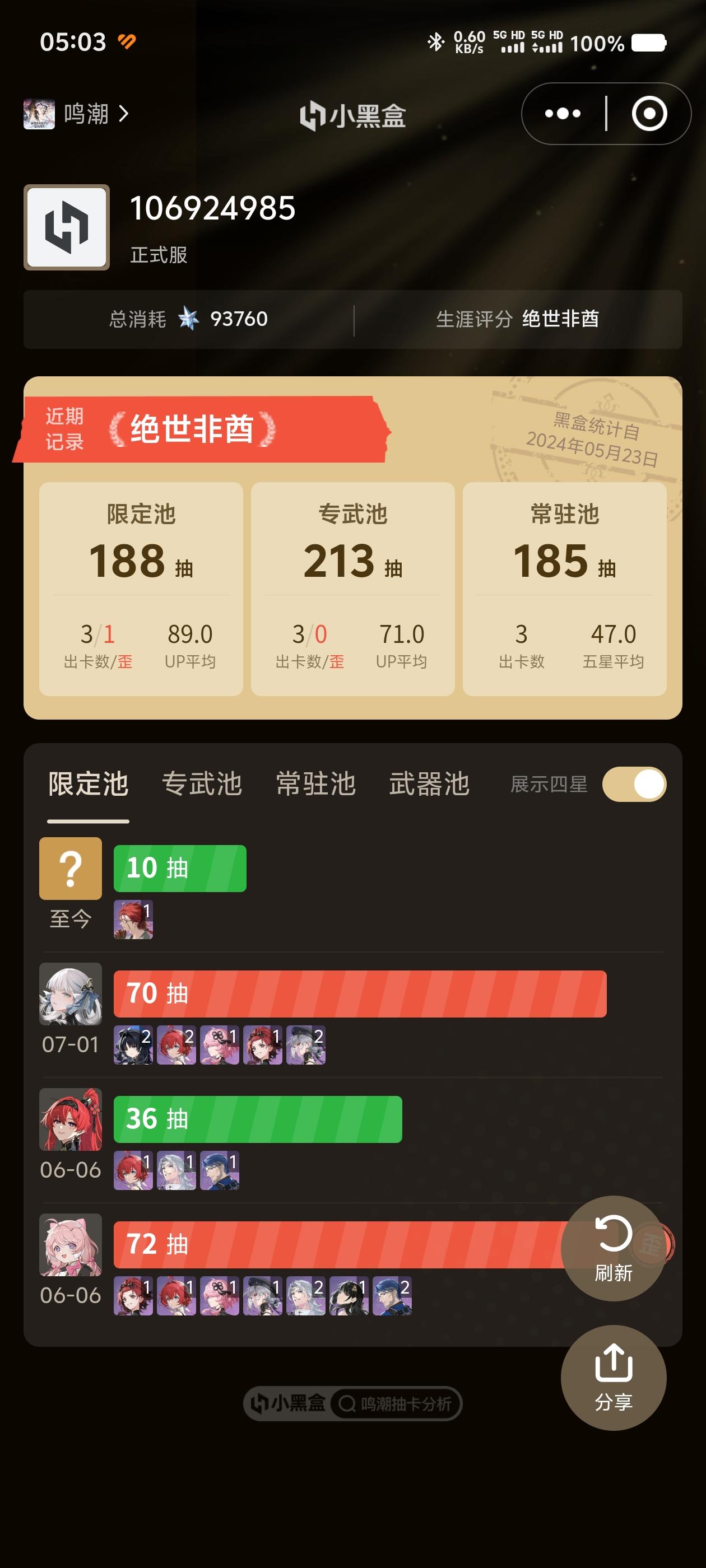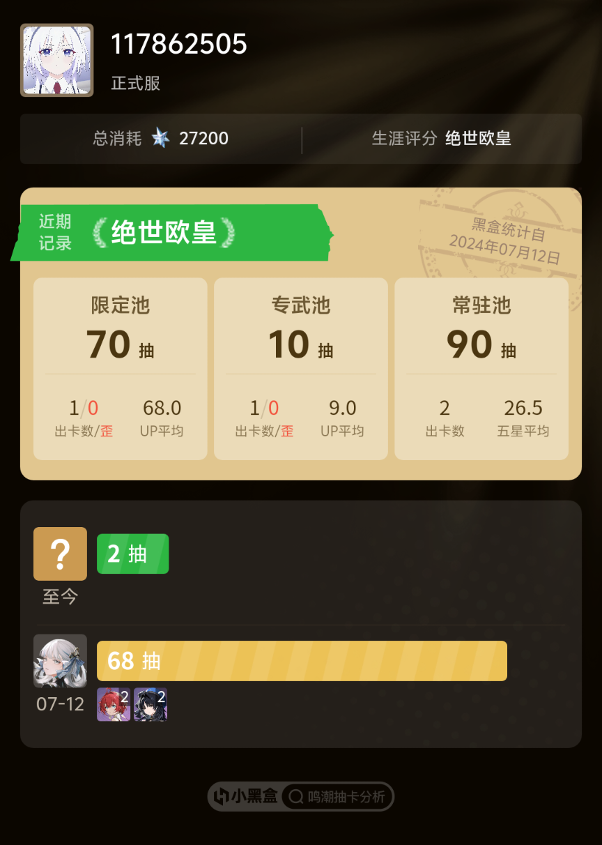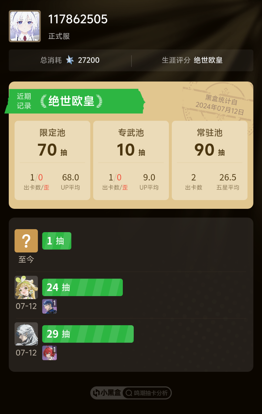 40抽拿下今汐还送了个维里奈新手池出的卡卡罗