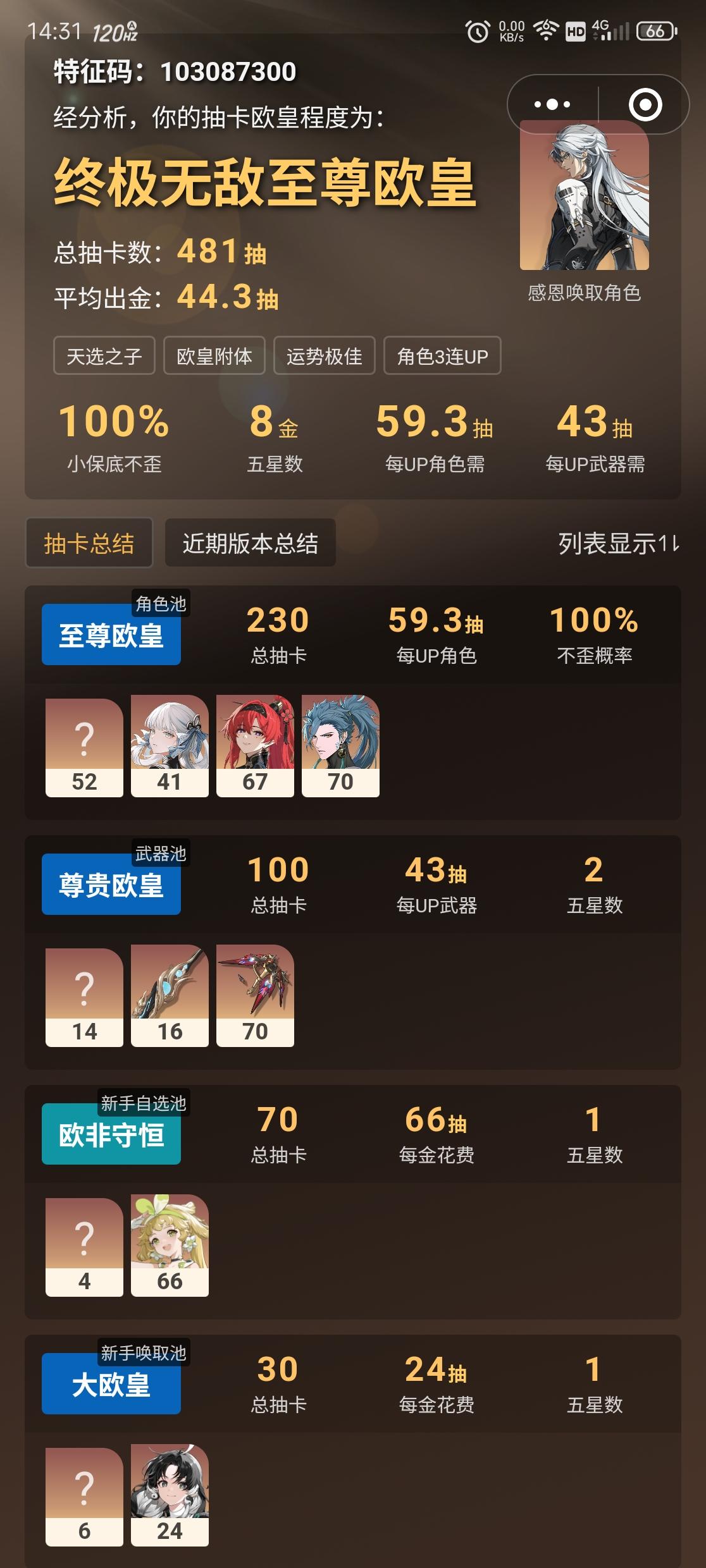 这个不得发一下,炫耀炫耀啊,真良心啊,第一次中双金芜湖,这是大保底,小保抽吟霖歪了个雪豹,知道会出特意录屏,以为就一个,没想到我还有这福气,还在考虑留着抽长离,看着我够10发我实在是忍不住就抽了,惊喜