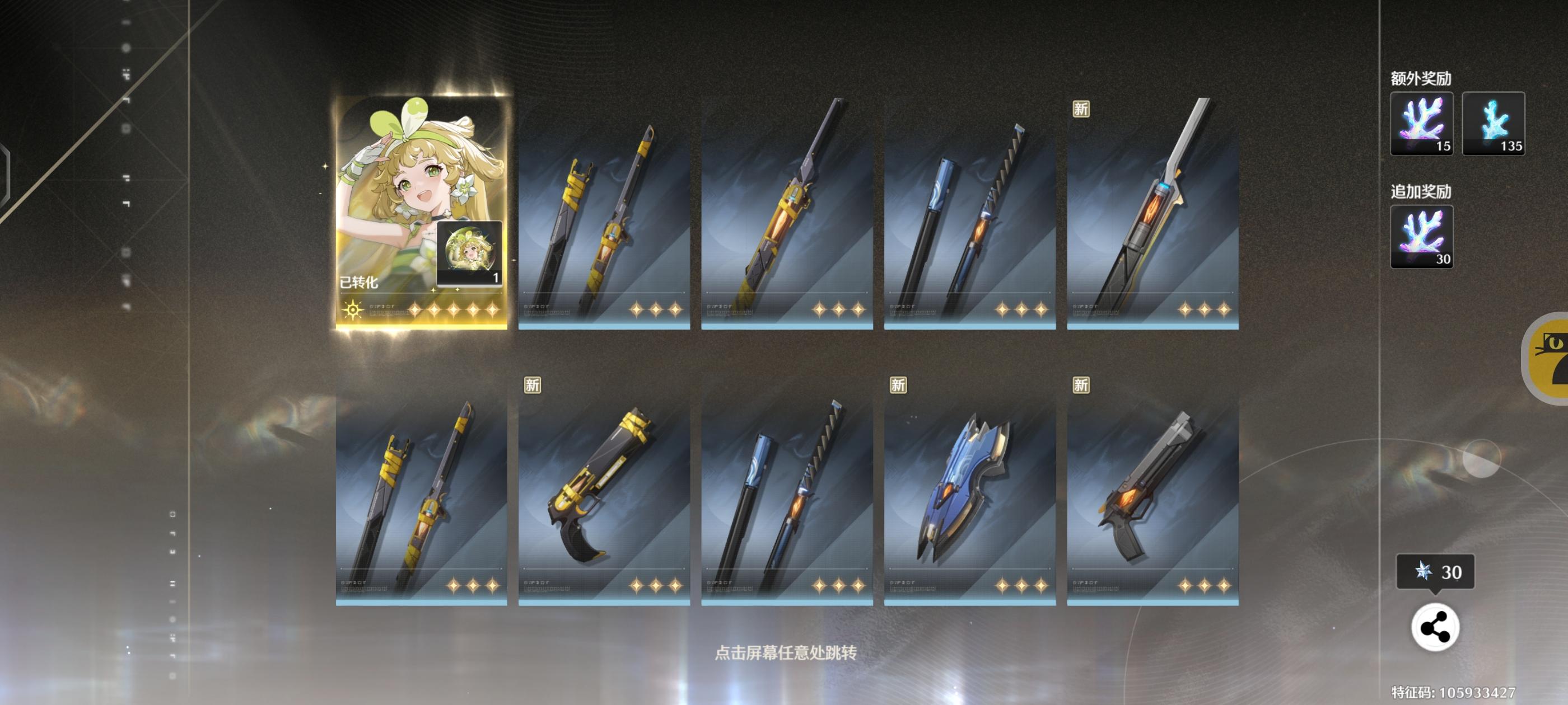 43+68抽另外手机十连抽新金也没有星声分享奖励了啊?