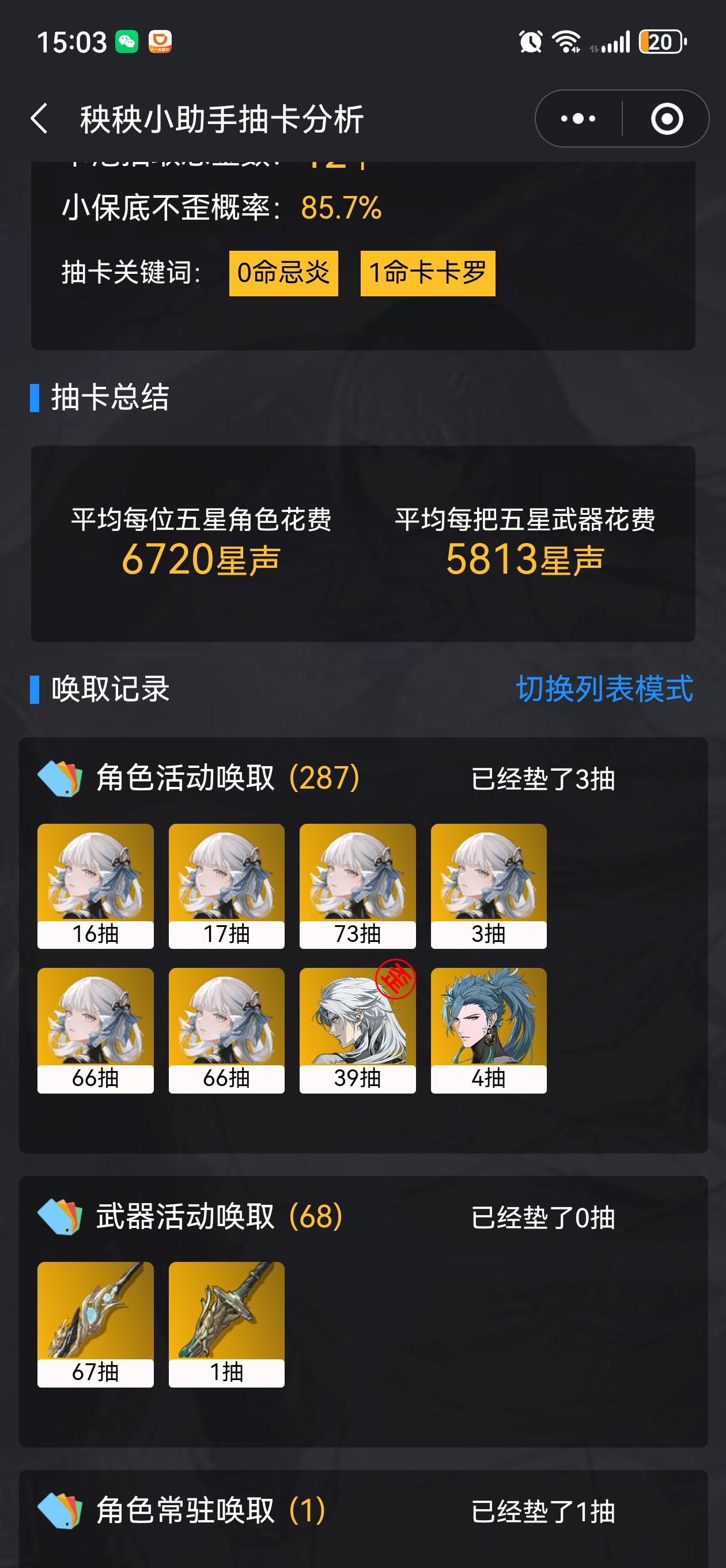 [破事氵]能不歪吗?130石抽今汐结果汇报