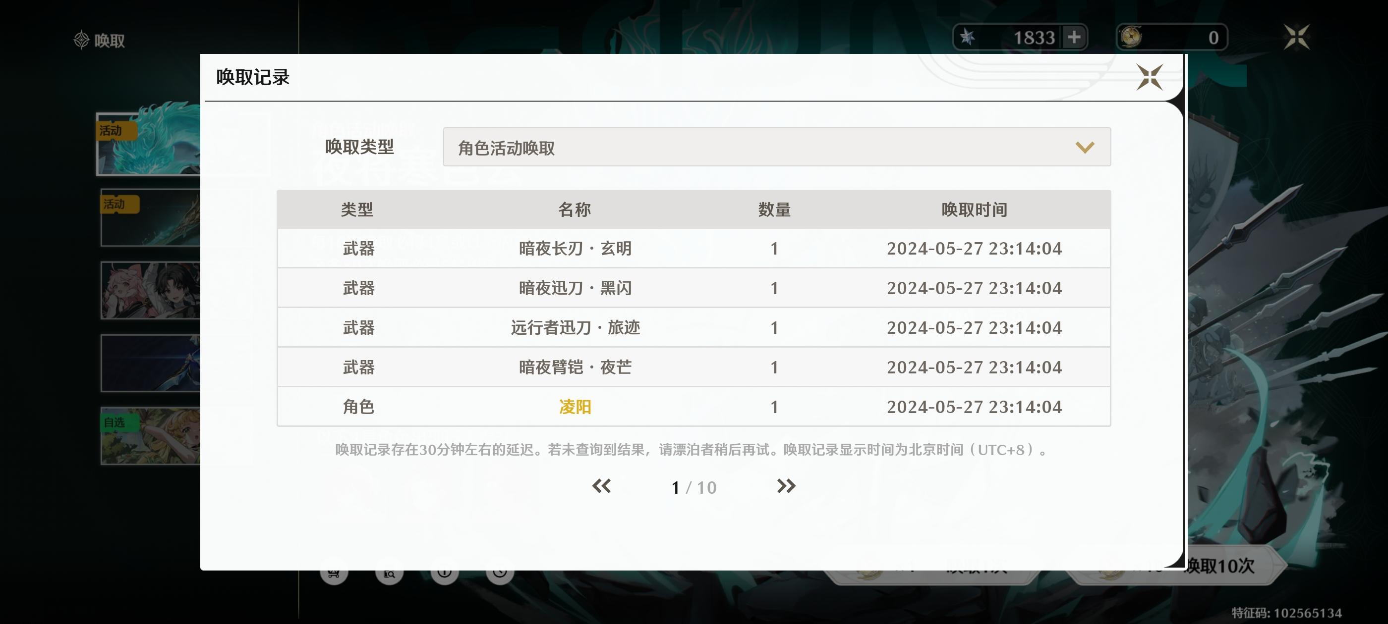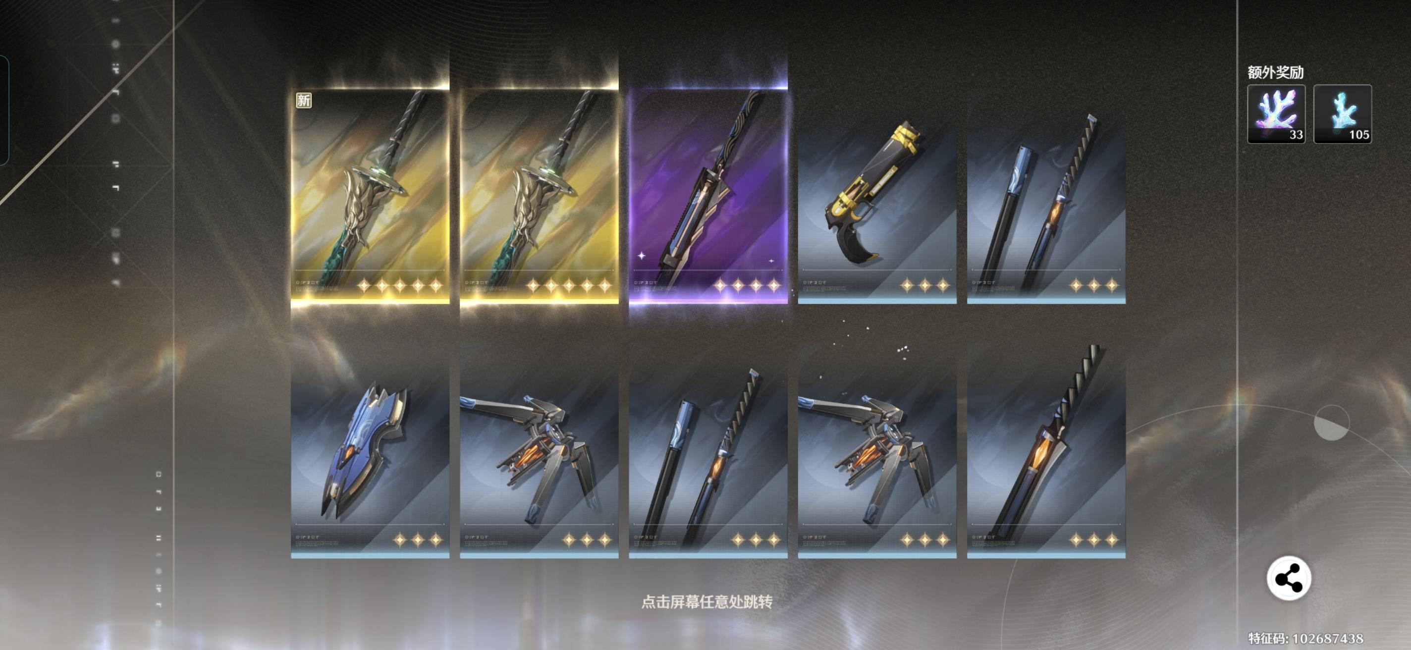本人因为单抽常驻10发0紫,破罐子破摔用钻抽3发10连出两把暴伤刀