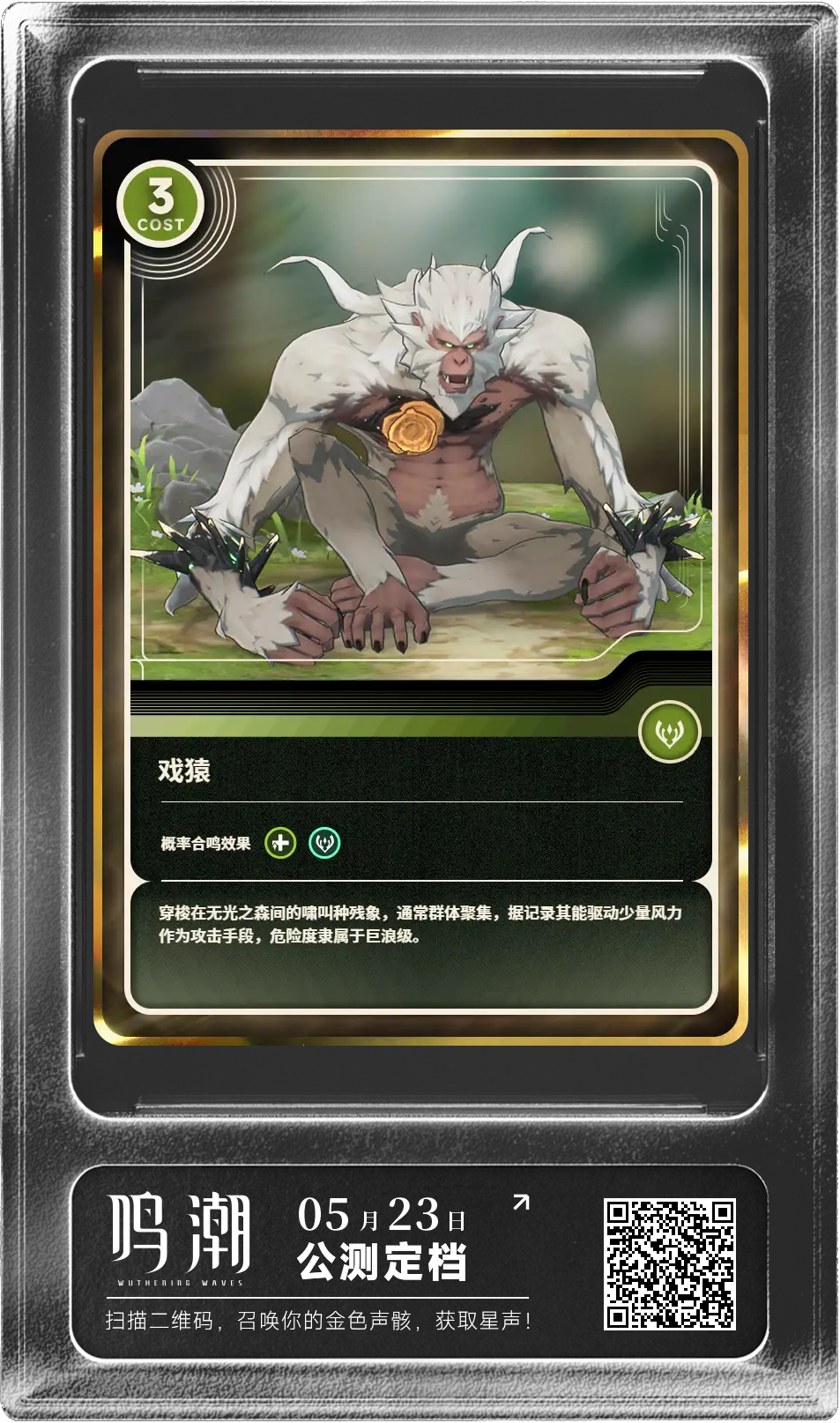 【共鸣觉醒 声骸召唤】我在《鸣潮》声骸召唤活动中获得了戏猿,点击得同款,获取星声吧! https://webevent-echoes2-mc.kurogames-global.com/?share_code=FX2DD1EA595BB3D949BCBAAD6DC90DF1B5自助