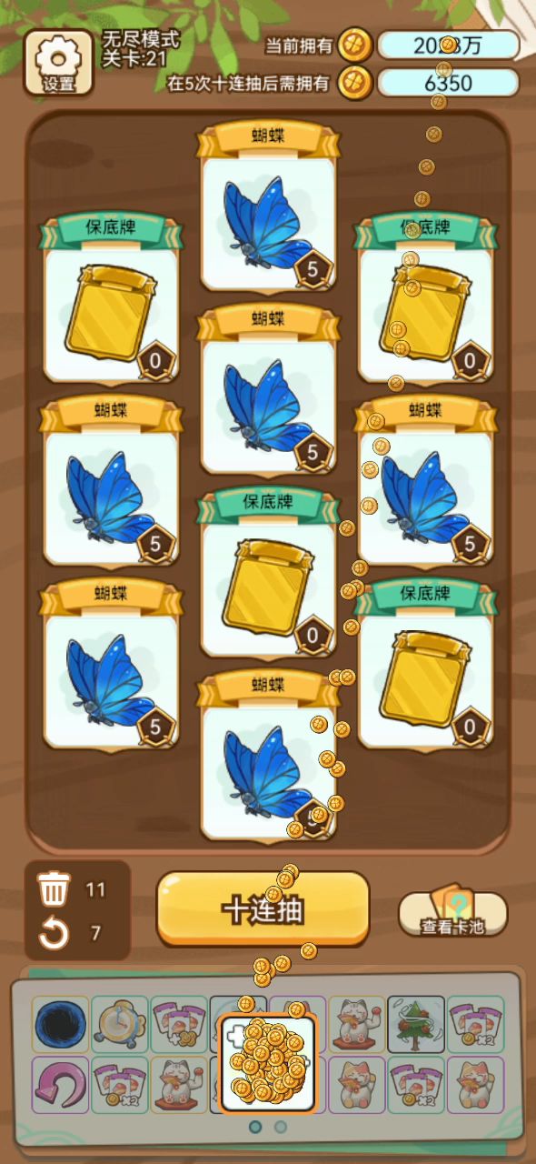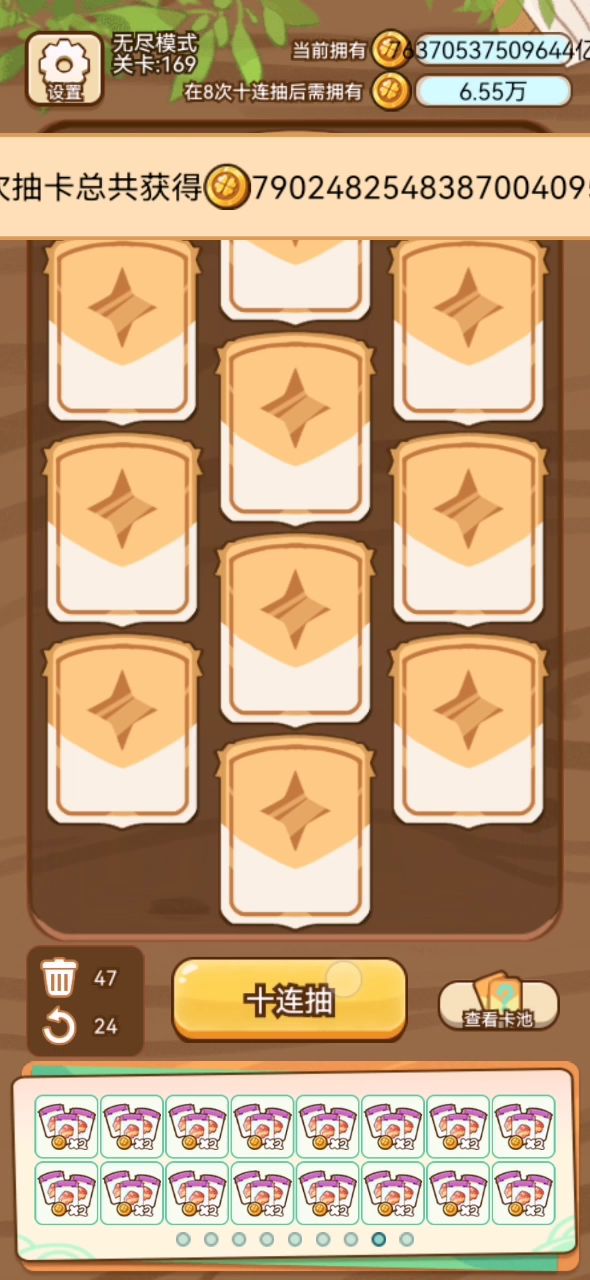 很容易成型我才15波就成了没有上线叠buff就成,选卡选贵的我拿了松子翻倍所以后期回屯松树很容易上手一个黑洞就可以开始了,保底转白板是核心虫洞可以没五波来口大的,我视频仅仅是18波有兴趣的可以尝试一下 😁