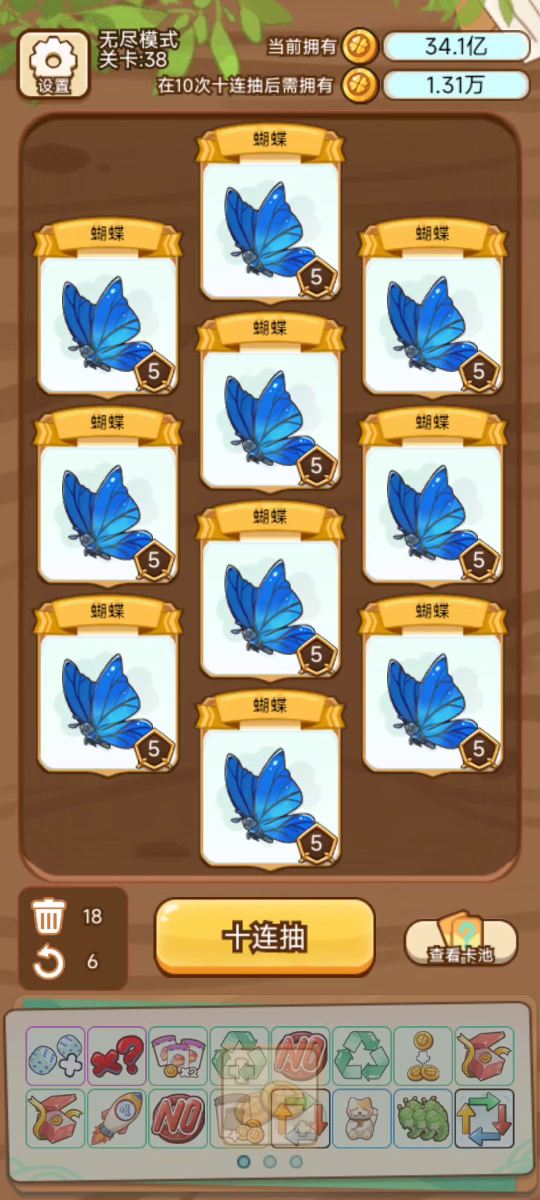 蝴蝶效应,3分钟说书,一轮20亿,而且其中很多根本没有用,现在在清理。目前一轮已经达到3000亿了。非常强力的一个玩法。我进行过测试,三蝴蝶就是效率最大化的结果了。不过我觉得超过一定数字后会不一样。回合之所以比较多是因为前期啥都不给我。