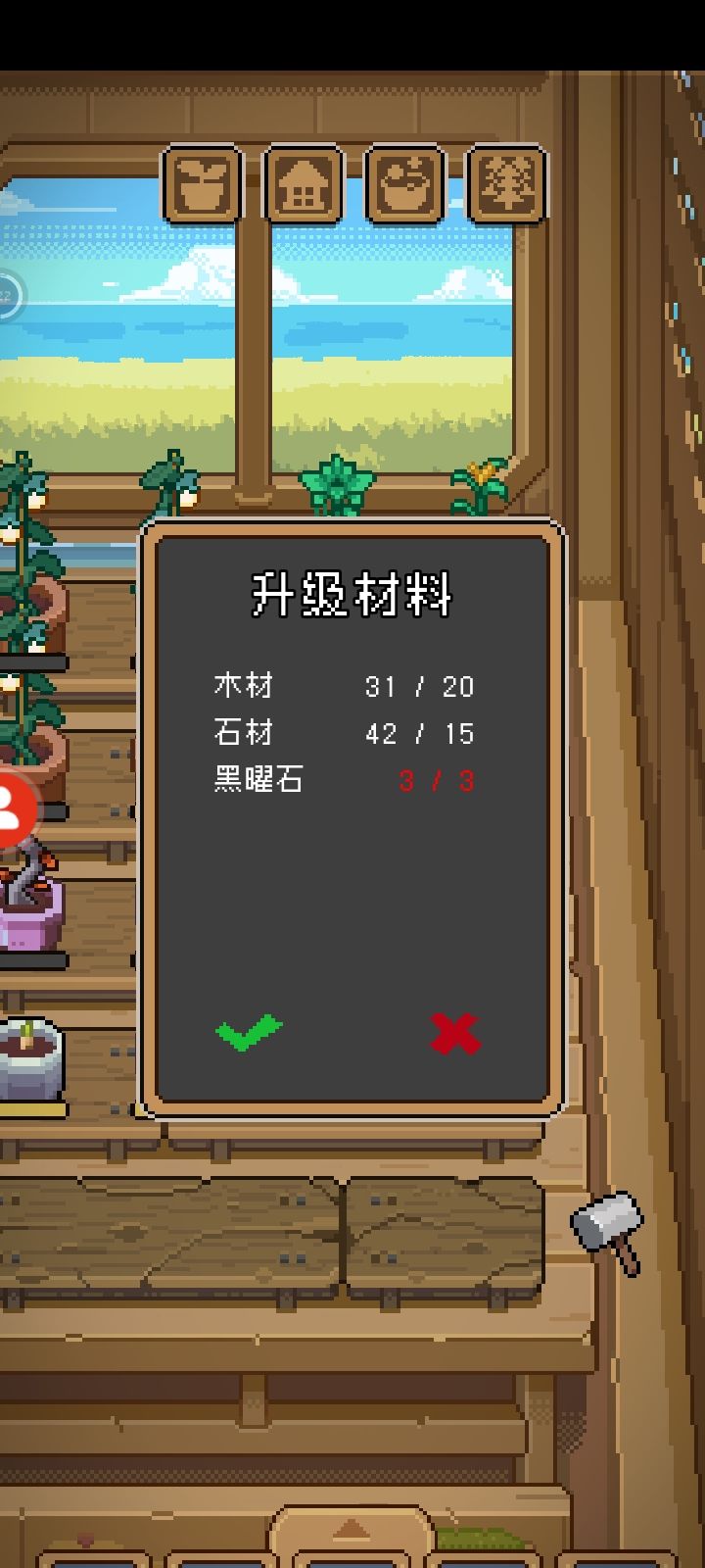 一些bug和卡关点第一点:现在还没有香料的来源途径,所以番茄酱薯条炸鱼薯条都不能做第二点:虽然写着最后一阶种植园园要20木头15石头和3黑曜石,实际上需要的应该是5黑曜石,文本显示错误了第三点:如果在战斗中不小心切屏切出去了很可能会造成之后的战斗中发生bug,比如看不到自己。