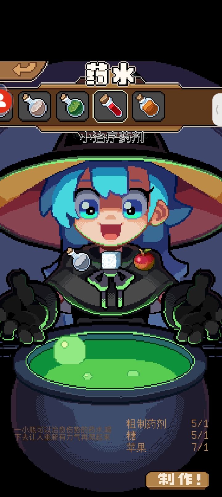 作者太太,我这里有一个bug。她在这个界面只要一按下“制作!”就会卡死(这种卡死是指女孩还在动,但是点游戏中的什么都不反应,手机本身没有事情的那种)目前我试了三次都是这样,希望修正一下,,