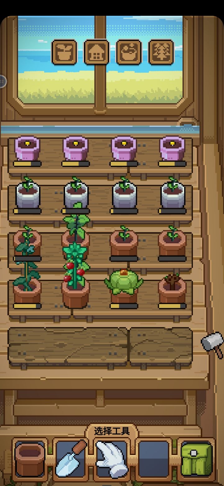 第1点是我最想吐槽的一点就是收获必须通过选择菜单下方的收获按钮才能进行,其中很多功能都需要一点一点勾选,不仅繁琐而且麻烦。直接种植完成后直接点击成熟的作物进行收获,空盆再点击可以选择种子种植。第2点,魔女的培养太过模糊化。当前技能伤害是多少?生命值得多少?有没有提升空间?魔力值的上限是多少?这点必须要好好的刻画一番,因为魔女的升级和培养也是游戏的一环。不过目前还属于测试阶段,我希望以后能尽快做出