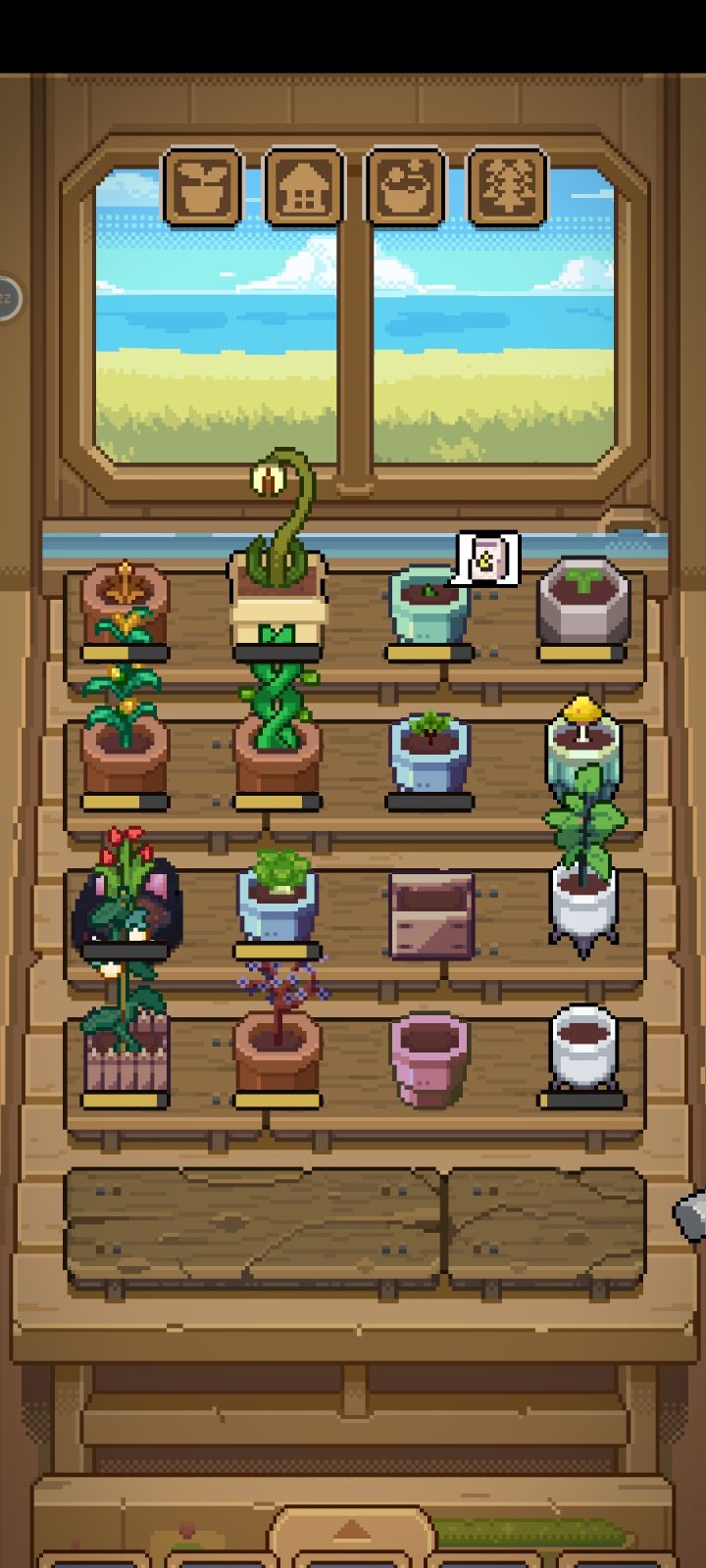 依然种不上东西的俩盆和错位的植物生长条看见右下空盆的进度条没,它其实是属于上头隔了一株灯芯草的那朵阳光菇(´-ι_-`)