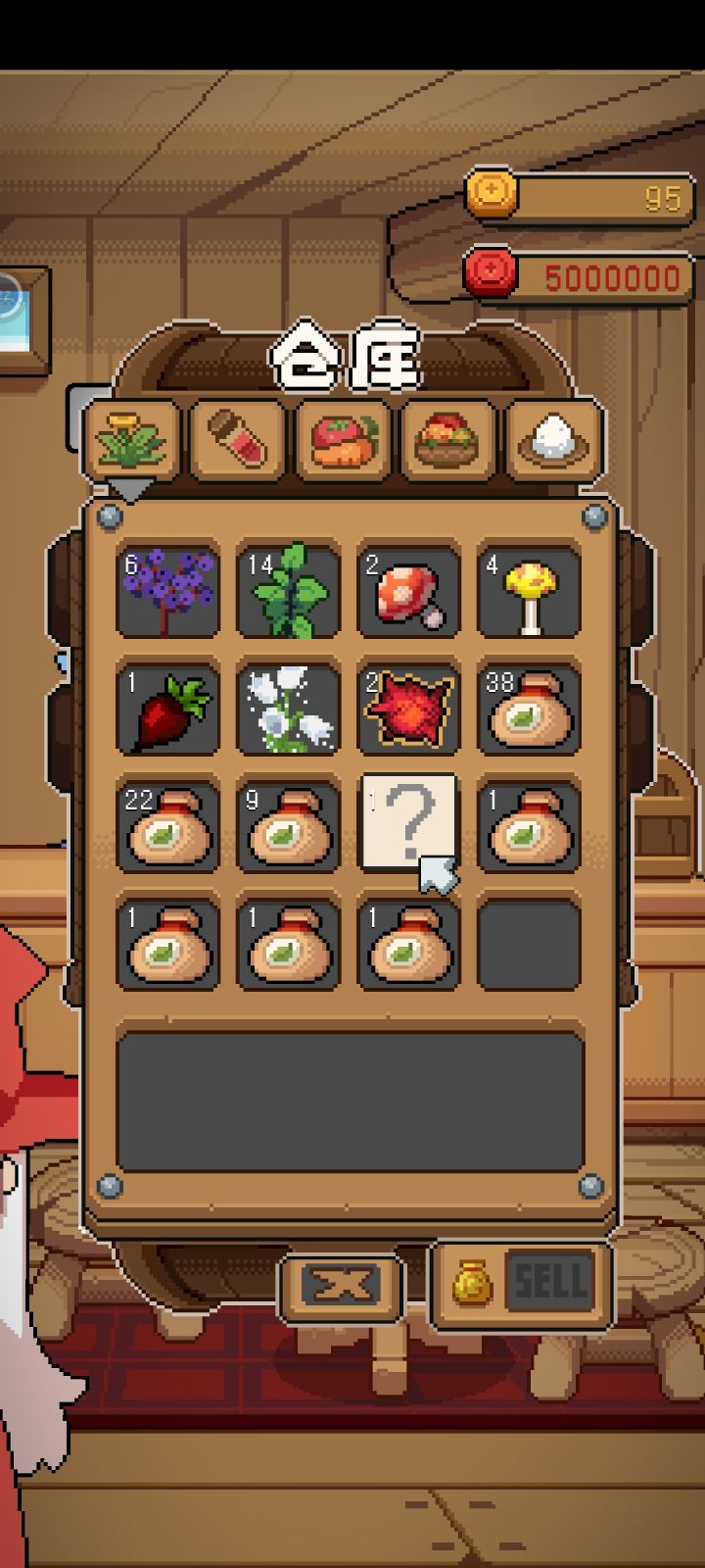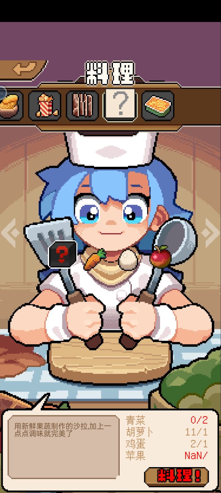 p3-p4:问号物品,无法使用也无法出售,料理那里合成出一个田园沙拉,但是在仓库里还是问号,也无法使用。